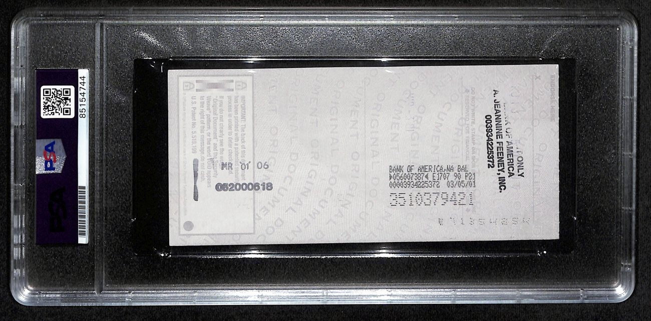 Johnny Unitas Hof Signed/Auto 2001 Bank Check Colts Psa/Dna Gem Mt 10 192620