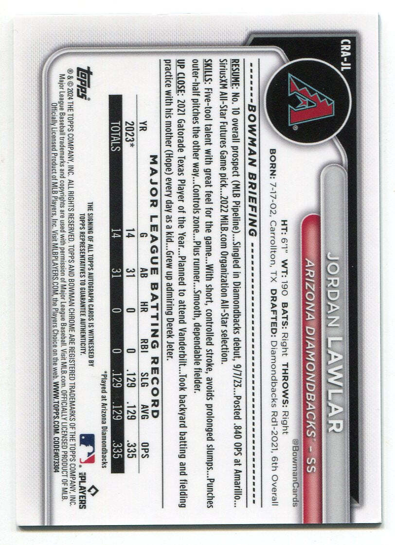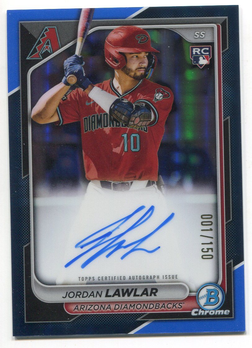Jordan Lawlar 2024 Bowman Chrome Autograph Blue Refractor Rookie Card /150
