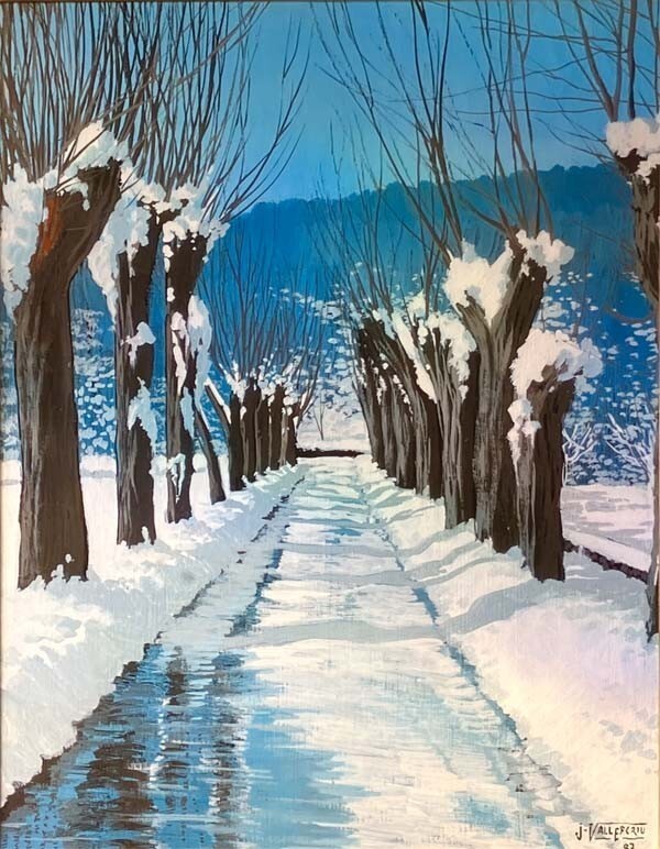 Jordi Vall Escriu "Snow Path" Original Oil Painting On Canvas Signed Spanish Art