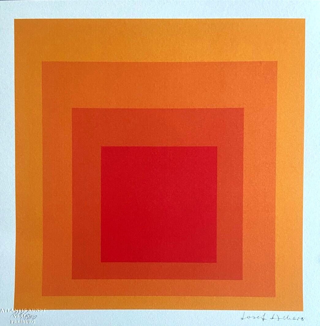 Josef Albers Lithograph COA Hand-Numbered Signed O.P. Stamp Josef Albers " Study in homage to the square " Chromolithography printed in 1978 in 180 specimens by Atlantis Verlag, Freiburg 33 x 33 cm Signature Josef Albers on the slab Dry and authentic stamp of the publishing house Atlantis Kunst Verlag Freiburg Josef Albers "Study in homage to the square" Chromolithography printed in 1978 in 180 specimens by Atlantis Verlag, Freiburg 33 x 33 cm Signature Josef Albers on the slab Dry and authentic stamp of the publishing house Atlantis Kunst Verlag Freiburg