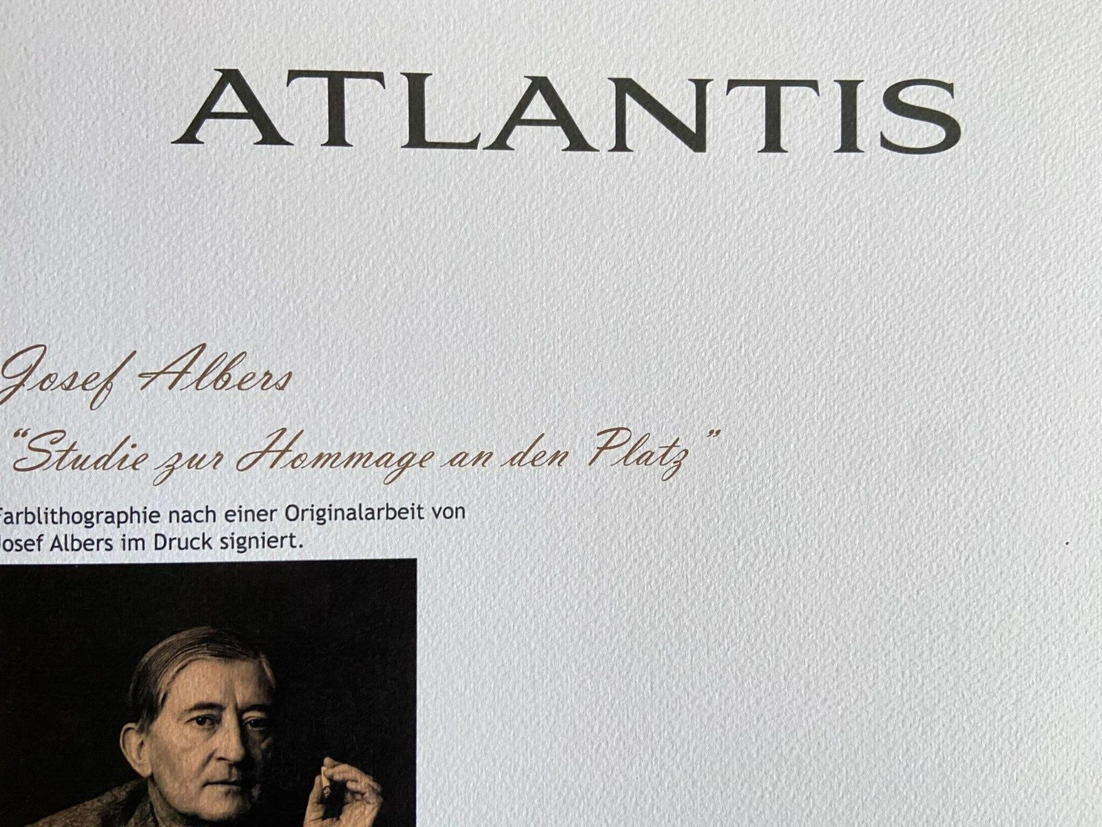 Josef Albers Lithograph COA Signed Numbered Hand Stamped Josef Albers " Study in homage to the square " Chromolithography printed in 1978 in 180 specimens by Atlantis Verlag, Freiburg 33 x 33 cm Signature Josef Albers on the slab COA signed in pen and stamped Dry and authentic stamp of the publishing house The progressive number could be different from the published one. Atlantis Kunst Verlag Freiburg Josef Albers "Study in homage to the square" Chromolithography printed in 1978 in 180 specimens by Atlantis Verlag, Freiburg 33 x 33 cm Signature Josef Albers on the slabCOA signed in pen and stamped Dry and authentic stamp of the publishing house The progressive number could be different from the published one. Atlantis Kunst Verlag Freiburg