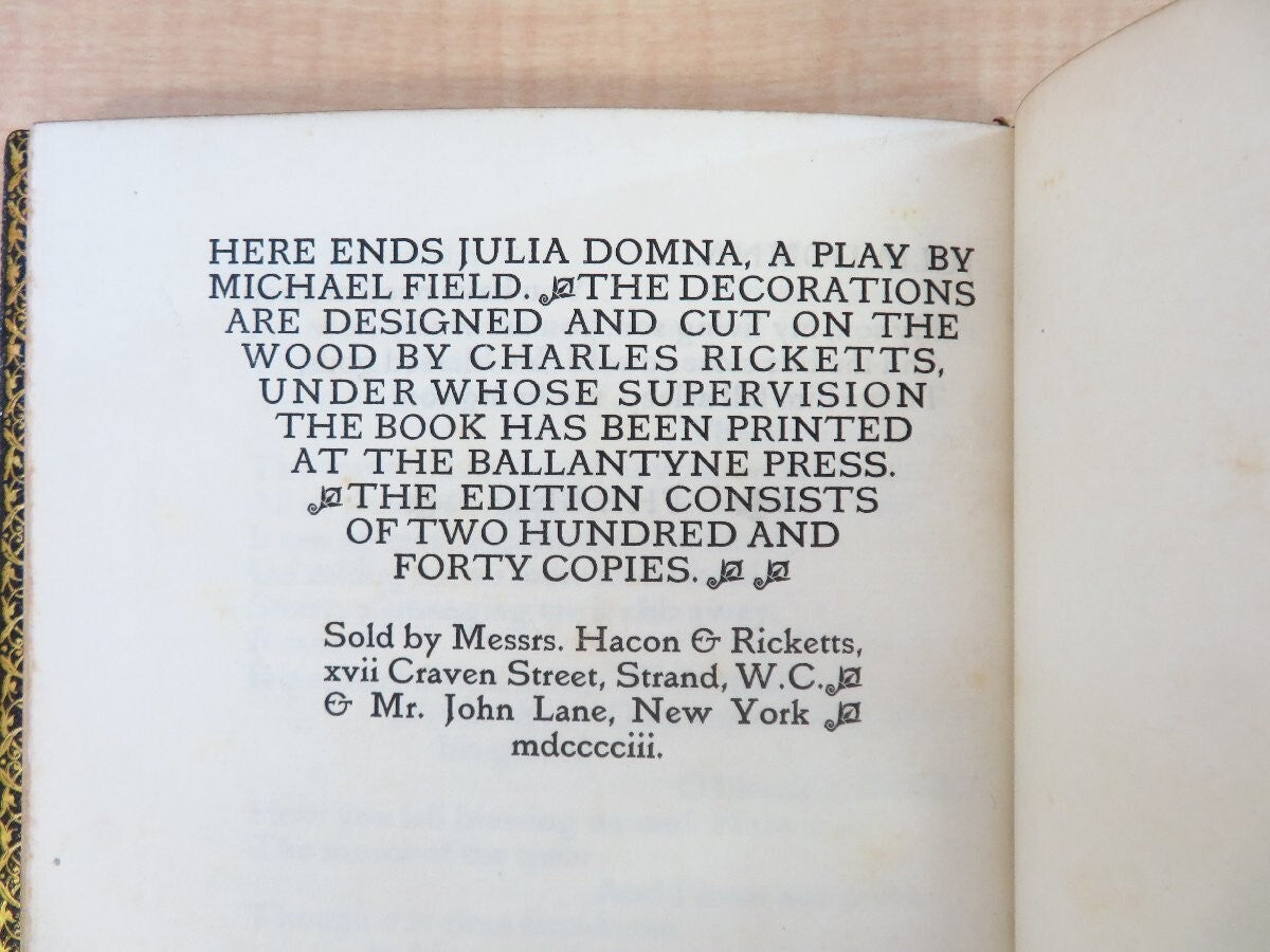 Julia Domna, A Play' By Michael Field (1/240), Illustrated By Charles Ricketts