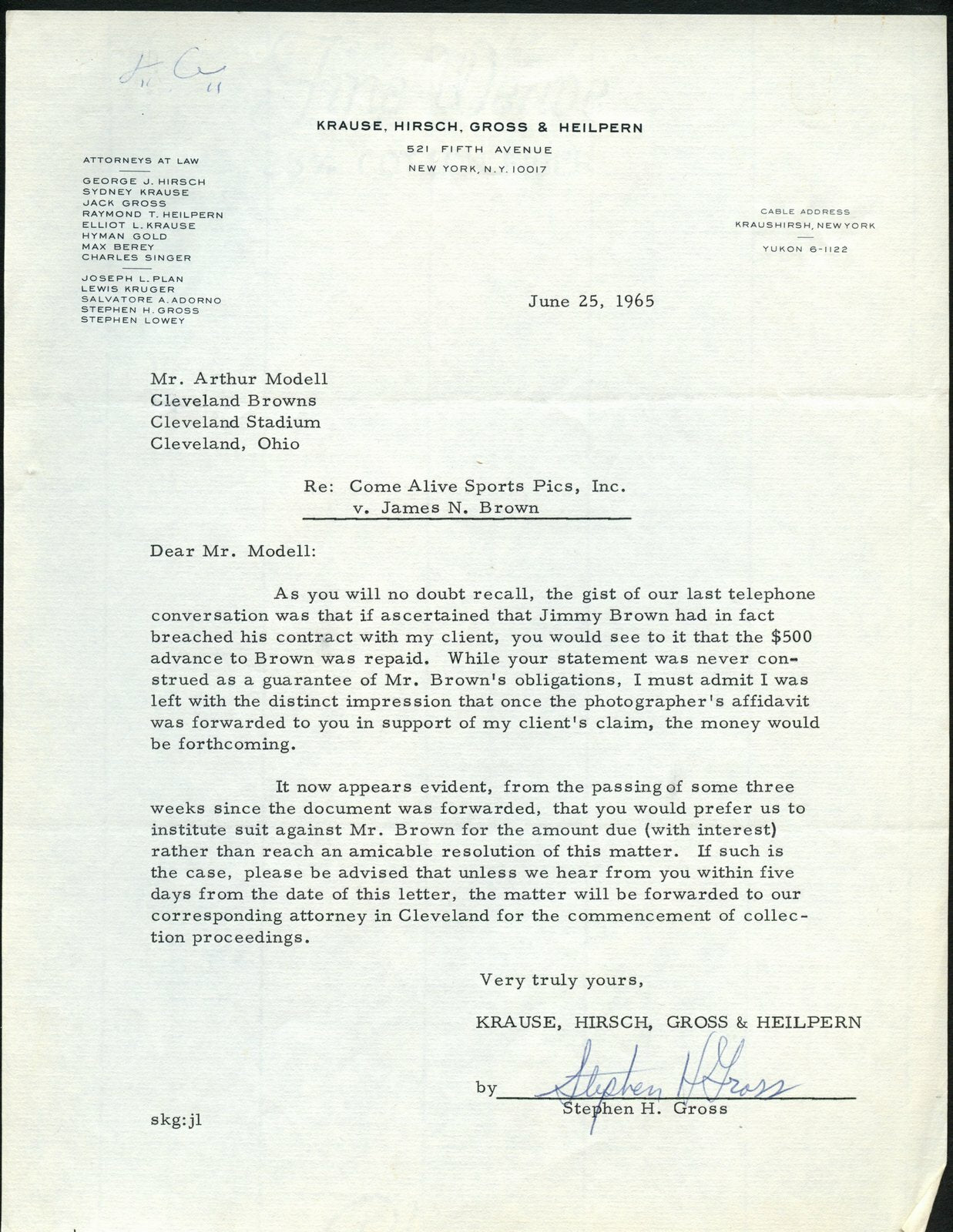 June 25, 1965 Series Of Letters To Browns Art Modell And Jim Brown 144991