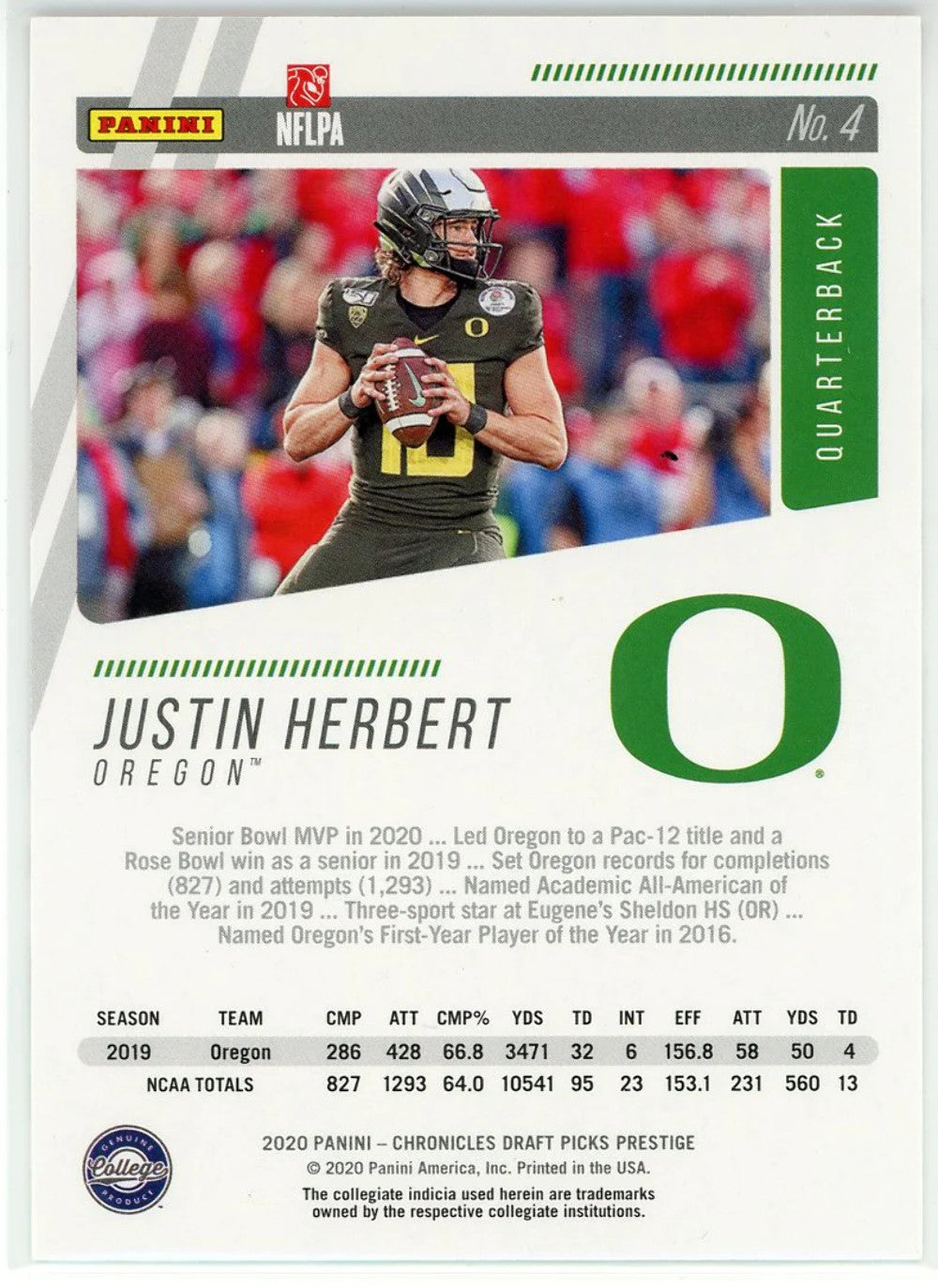 Justin Herbert 2020 Panini Chronicles Prestige Draft Picks Rookie Card