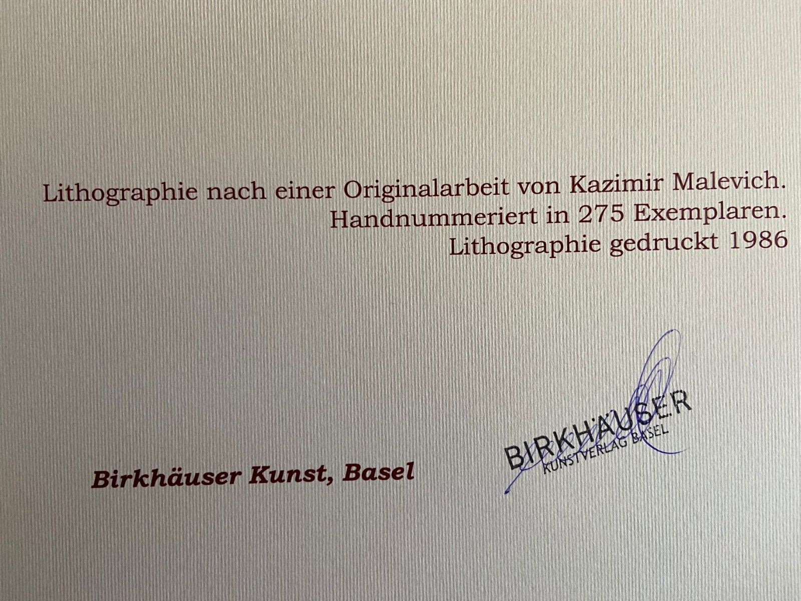 Kazimir Malevich Lithograph Numbered COA - Piet Mondrian Kazimir Malevich " Suprematist composition " Lithograph of an work by Kazimir Malevich , printed in 1986. 30 x 42 cm 275 hand numbered specimens Kazimir Malevich signs on the slab. The progressive number could be different from the published one. Birkhuser Kunstverlag, Basel Kazimir Malevich "Suprematist composition" Lithograph of an work by Kazimir Malevich , printed in 1986. 30 x 42 cm 275 hand numbered specimens Kazimir Malevich signs on the slab. The progressive number could be different from the published one. Birkhuser Kunstverlag, Basel