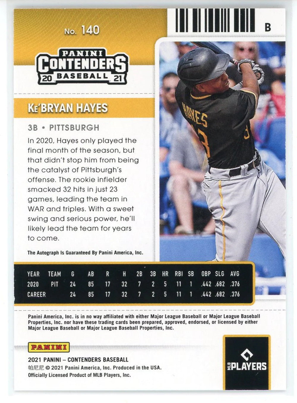 Ke'Bryan Hayes Autographed 2021 Panini Contenders Rookie Ticket Card #140