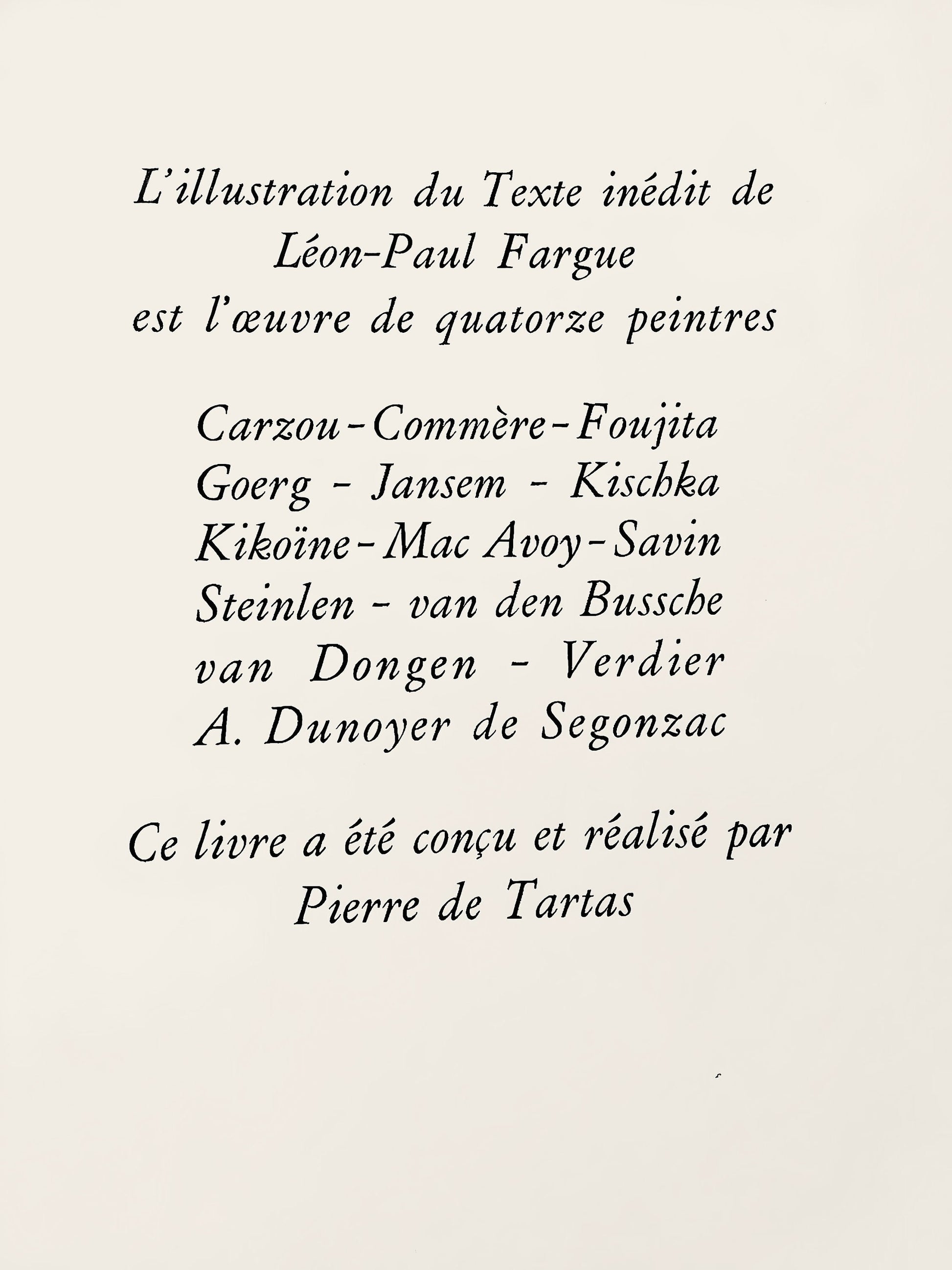 Published by Pierre de Tartas, diteur, Paris-Bivres; printed by L'Ateliers Guillard Gourdon et Cie, Paris, 1964.