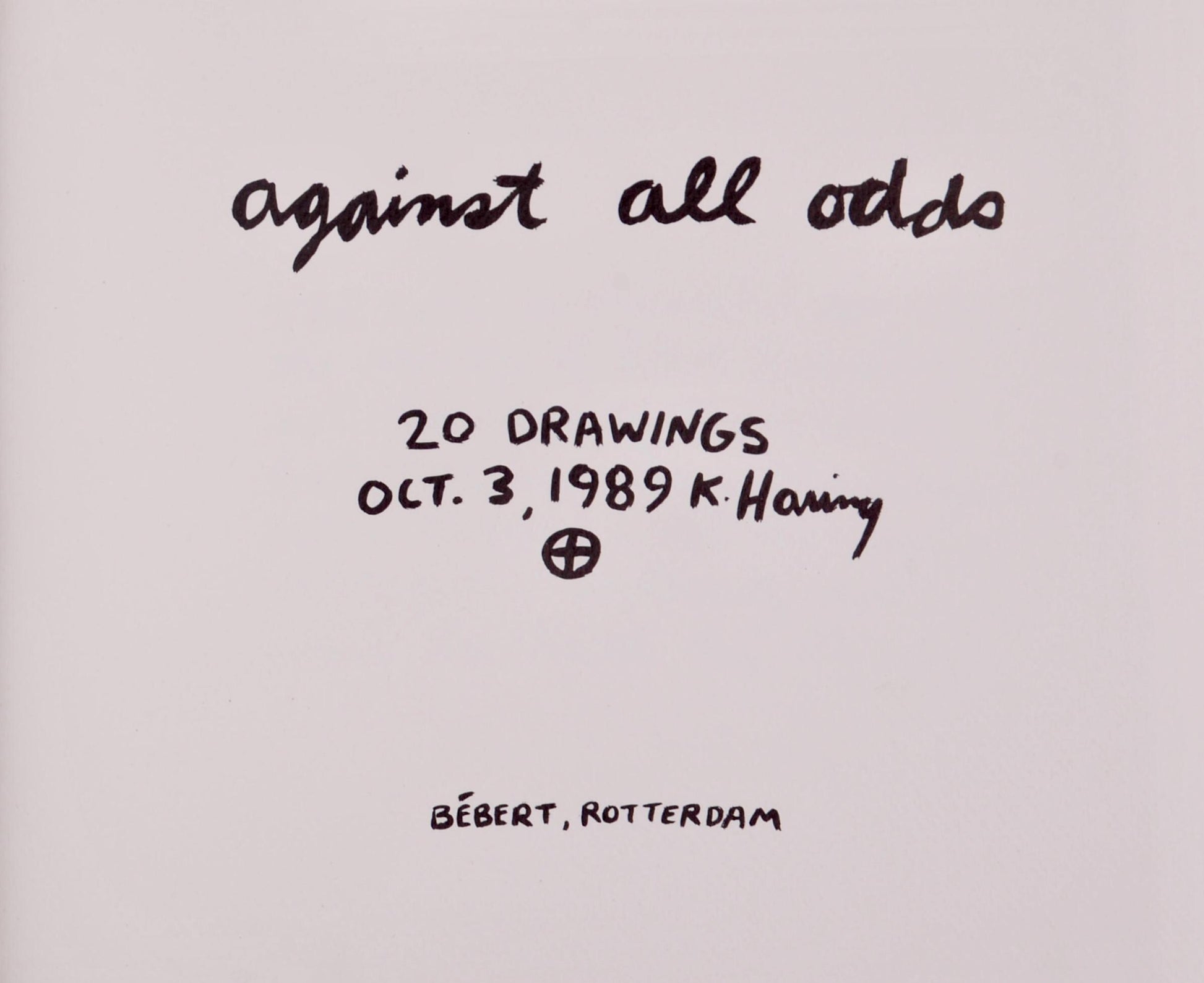Lithograph on acid free Rivoli vlin paper. Paper Size: 8.5 x 10.4 inches. Excellent condition. Inscription: Unsigned and unnumbered, as issued. Notes: From the volume, Against All Odds, 20 Drawings, 1989. Published by Bbert Publishing House, Rotterdam, in collaboration with Mera and Donald Rubell, New York; printed by De Nieuwe Grafische, Rotterdam, 1989. Excerpted from the volume, 20 Drawings - Oct. 3, 1989, was published with the collaboration of Mera and Donald Rubell by Bbert Publishing House in Spring,1990. The edition consists of MMD hardcover examples, of which D are numbered (MD - DIX/D) and signed by the artist. The edition was printed on acid-free Rivoli paper by Nieuwe Grafische in Rotterdam, and bound by Stokkink B.V. in Amsterdam. Keith Karing, N.Y.C., 1990. Mera + Don Rubell, N.Y.C., 1990 Bbert Publishing House-Westersingel 22 - 3014 GP Rotterdam, Holland - 1990.