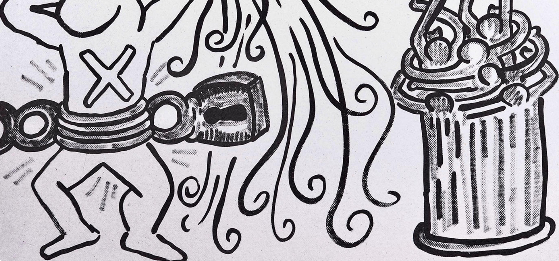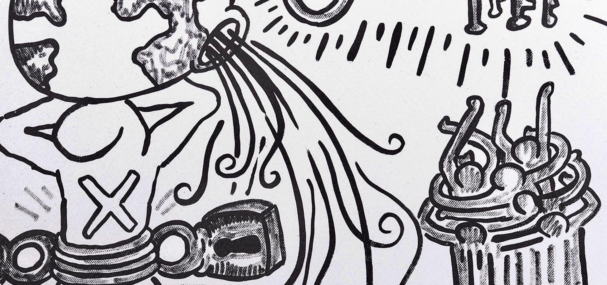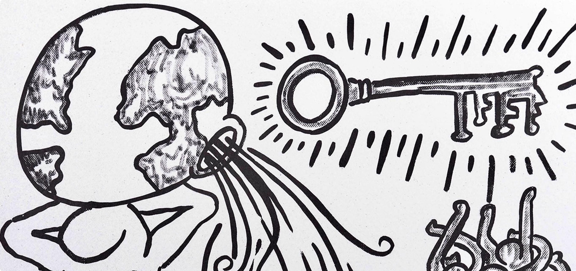 KEITH HARING (1958-1989) A leading Neo-Pop artist, was one of the most articulate members of his generation. He captivated the imaginations of New York City commuters with his subway wall drawings in the early 1980s, and later exhibited his works in prestigious museums throughout the world. The international success of his work has given rise to a proliferation of art in public places. Quick simple and direct, Haring's compositions of Radiant Babies and Barking Dogsdraw one's attention to the playful surface activity, while beneath, one discovers Haring's unique world of sinister and subtle humor.
