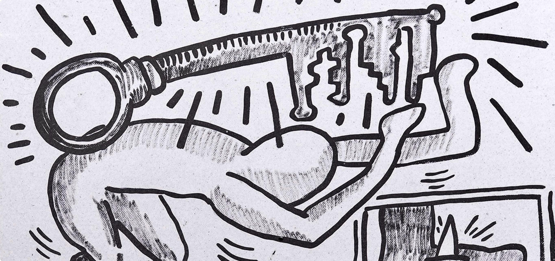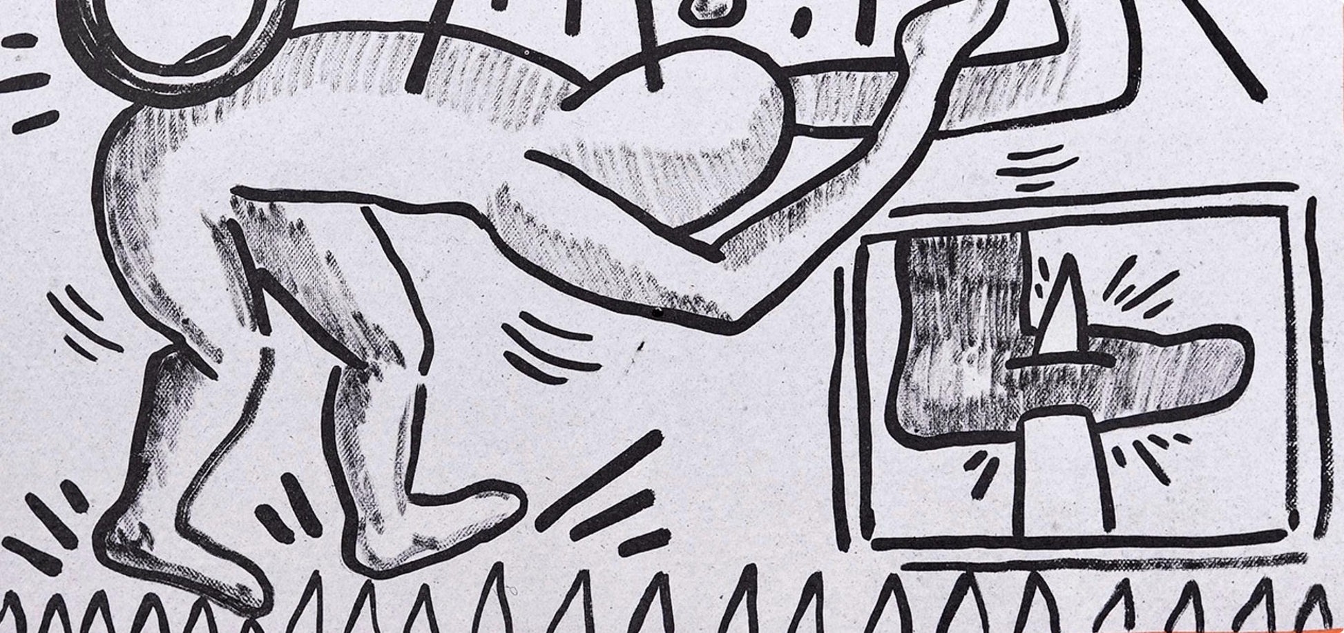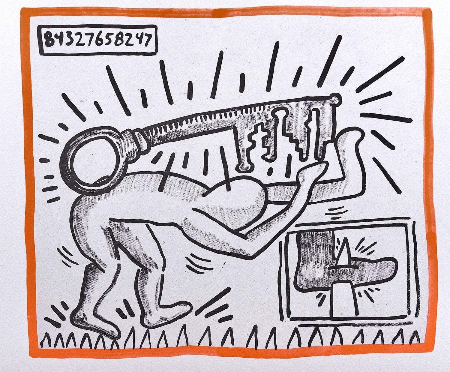 KEITH HARING (1958-1989) A leading Neo-Pop artist, was one of the most articulate members of his generation. He captivated the imaginations of New York City commuters with his subway wall drawings in the early 1980s, and later exhibited his works in prestigious museums throughout the world. The international success of his work has given rise to a proliferation of art in public places. Quick simple and direct, Haring's compositions of Radiant Babies and Barking Dogsdraw one's attention to the playful surface activity, while beneath, one discovers Haring's unique world of sinister and subtle humor.