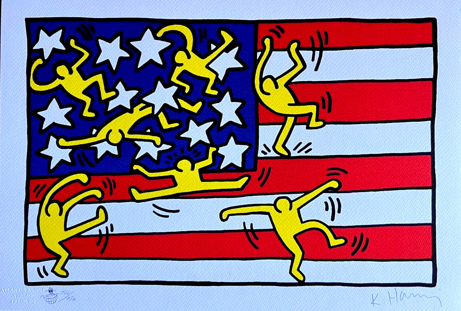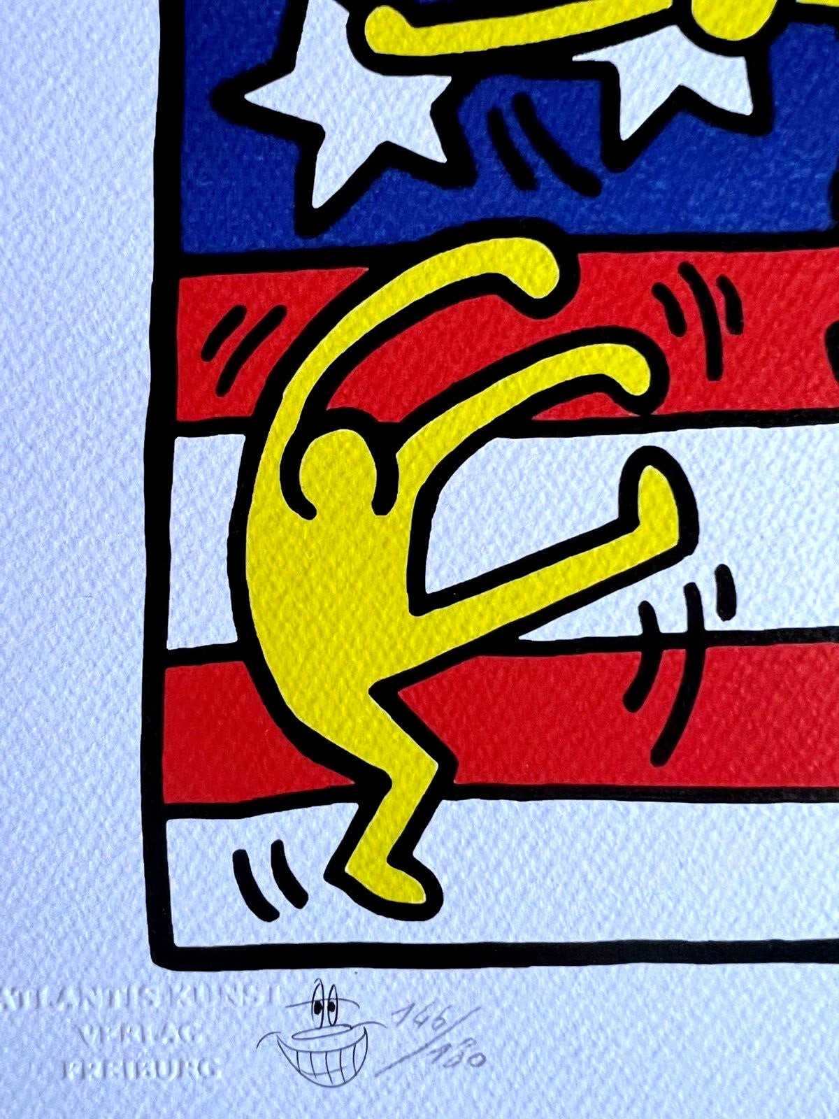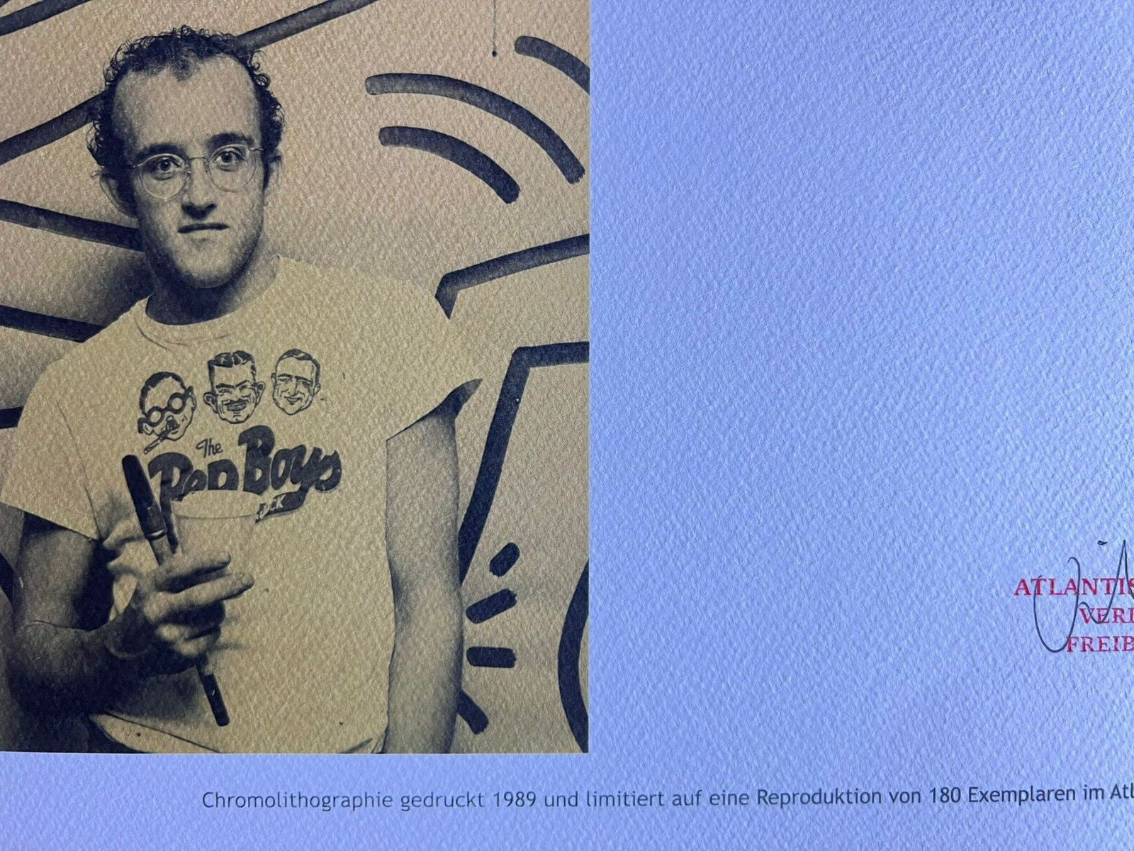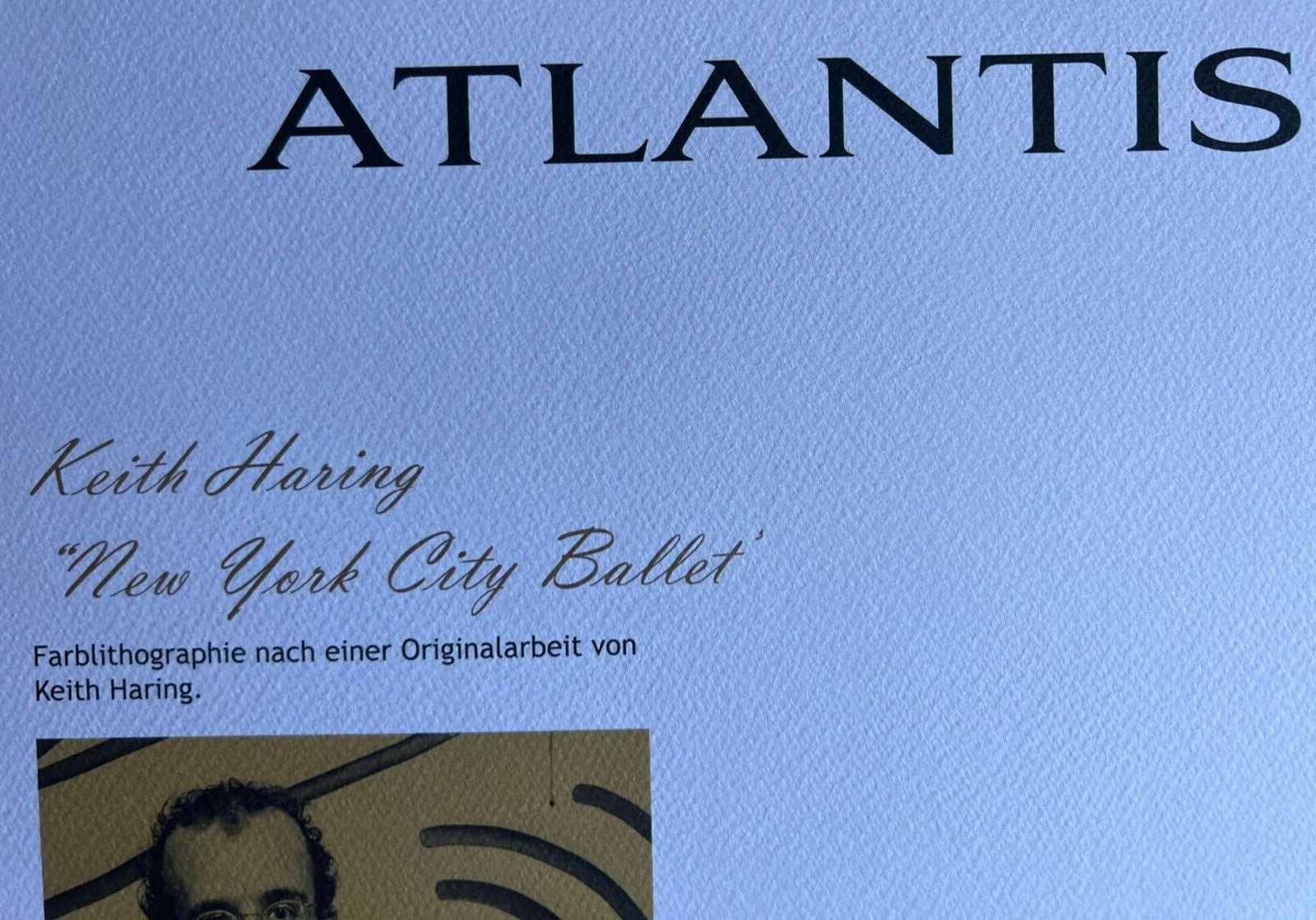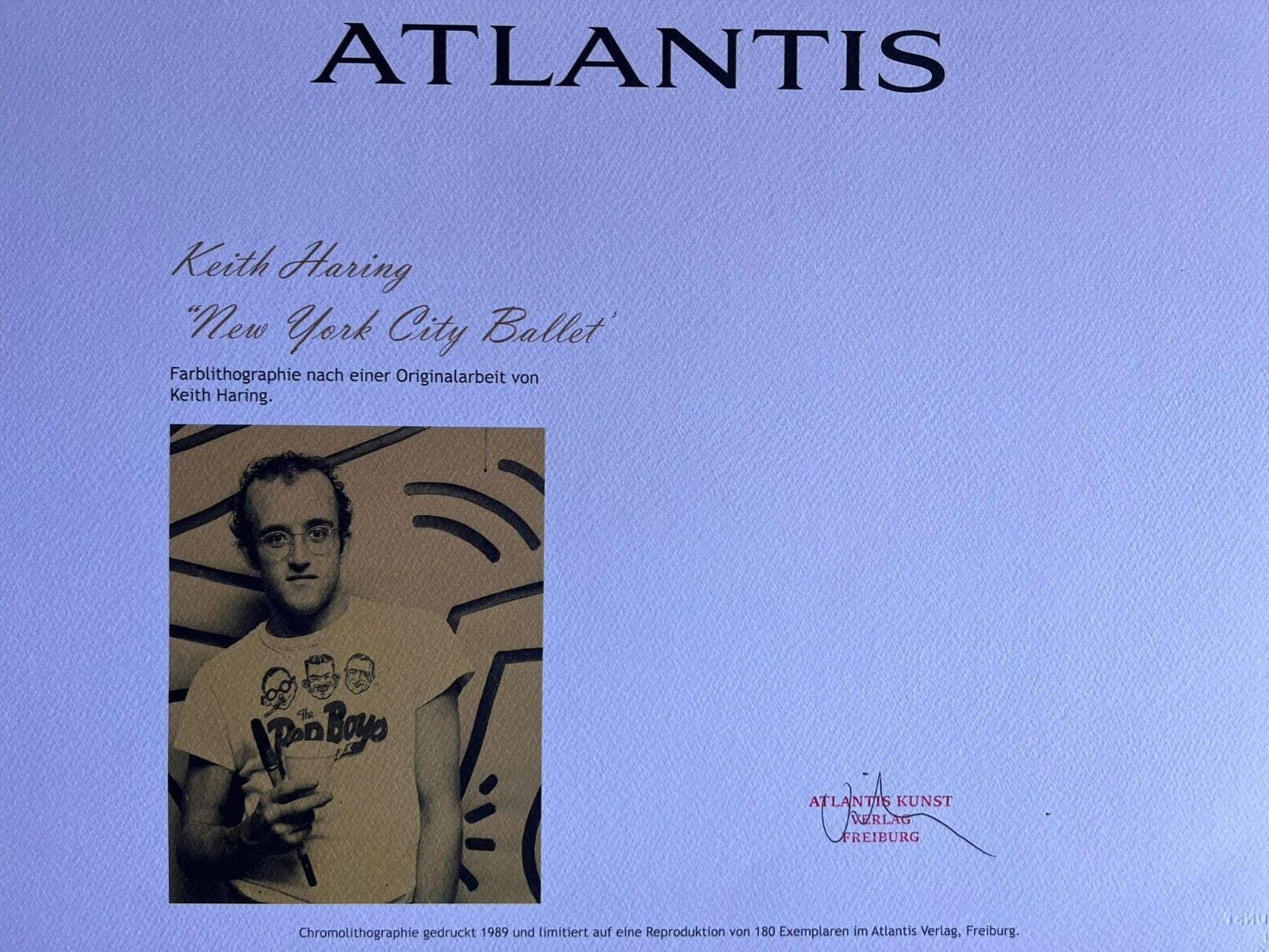 Keith Haring, Lithograph From A Painting [COA Signed In Pen] Numbered In Pencil Keith Haring "New York City Ballet " Chromolithography printed in 1989 in 180 specimens by Atlantis Verlag, Freiburg 32 x 47 cm Keith Haring signature on the slab - ORIGINAL COA Signed in Penna and stamped by the publisher Dry and authentic stamp of the publishing house The progressive number could be different from the published one. Atlantis Kunst Verlag Freiburg Keith Haring "New York City Ballet" Chromolithography printed in 1989 in 180 specimens by Atlantis Verlag, Freiburg 32 x 47 cm Keith Haring signature on the slab- ORIGINAL COA Signed in Penna and stamped by the publisher Dry and authentic stamp of the publishing house The progressive number could be different from the published one. Atlantis Kunst Verlag Freiburg