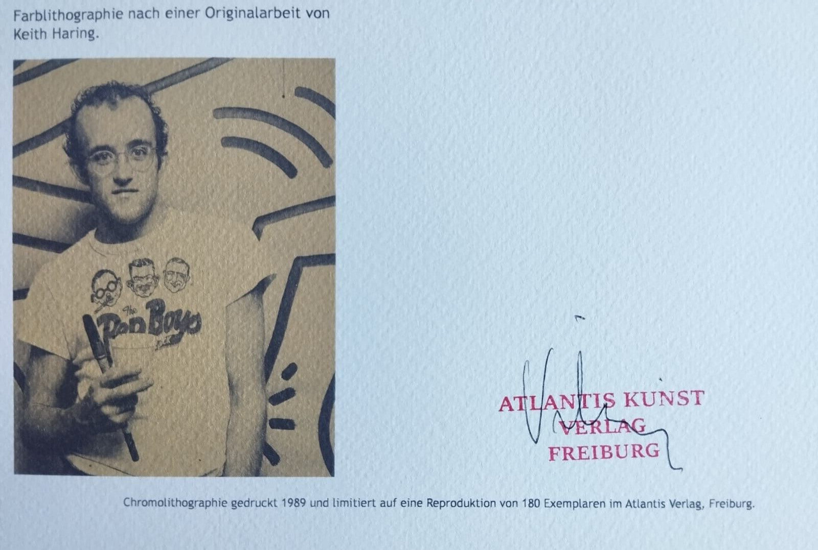 Keith Haring signature on the slab COA original signed in pen and stamped Dry and authentic stamp of the publishing house