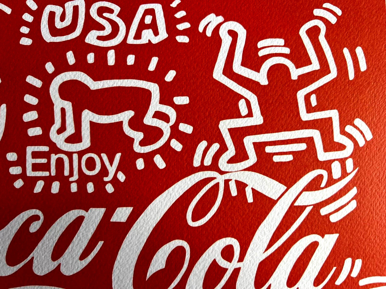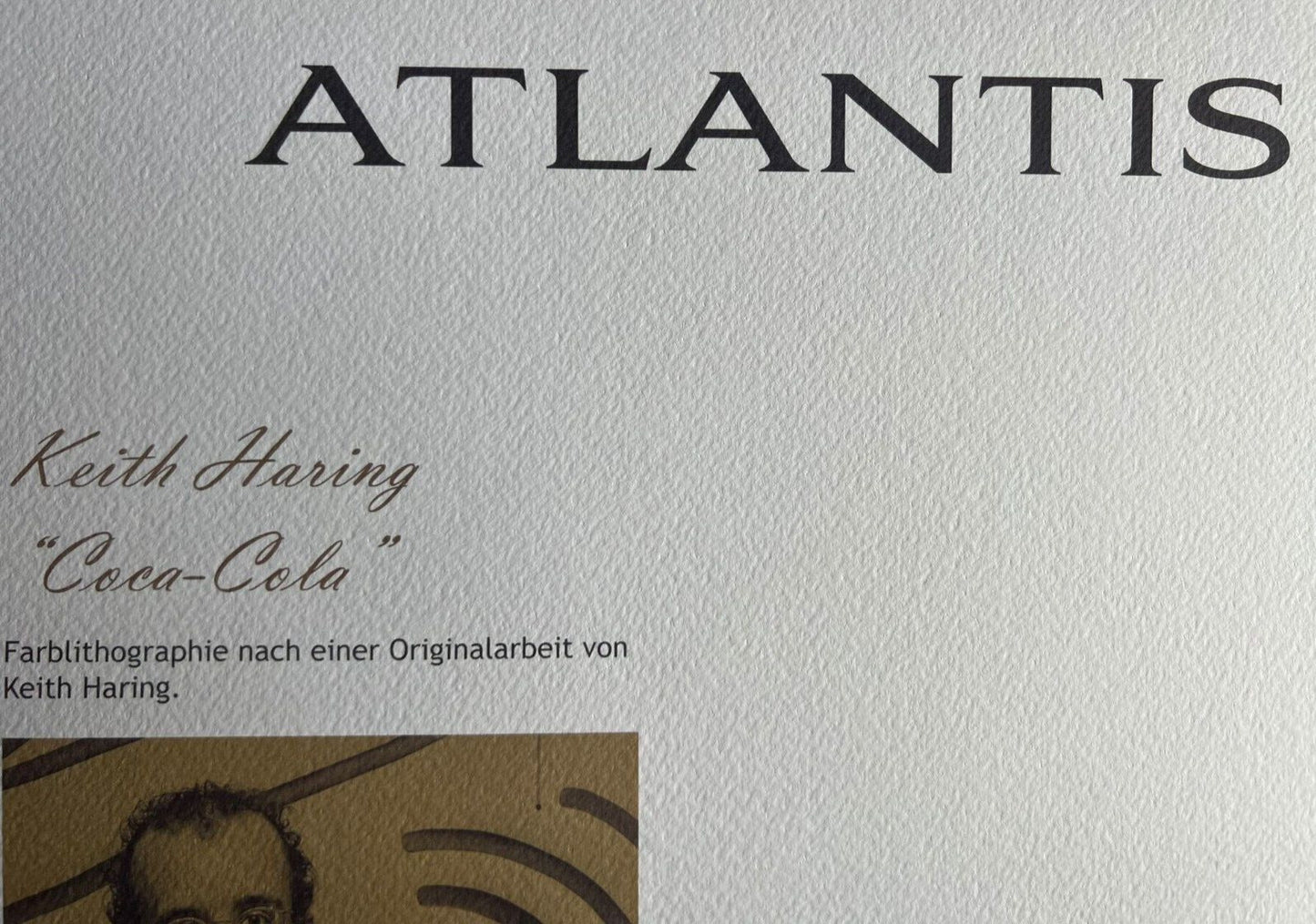 Keith Haring "Coca Cola " Chromolithography printed in 1989 in 180 specimens by Atlantis Verlag, Freiburg 32 x32 cm Keith Haring signature on the slab - ORIGINAL COA Signed in Penna and stamped by the publisher Dry and authentic stamp of the publishing house Atlantis Kunst Verlag Freiburg Keith Haring "Coca Cola" Chromolithography printed in 1989 in 180 specimens by Atlantis Verlag, Freiburg 32 x32 cm Keith Haring signature on the slab- ORIGINAL COA Signed in Penna and stamped by the publisher Dry and authentic stamp of the publishing house Atlantis Kunst Verlag Freiburg