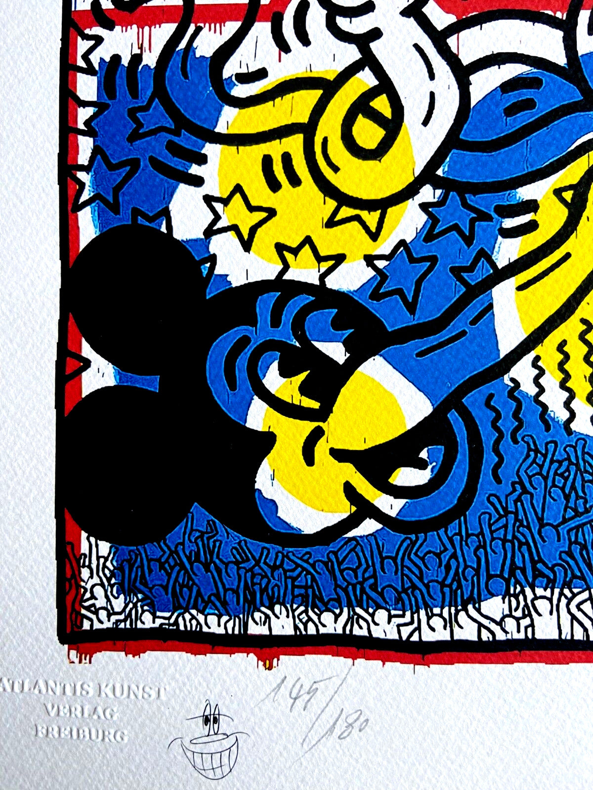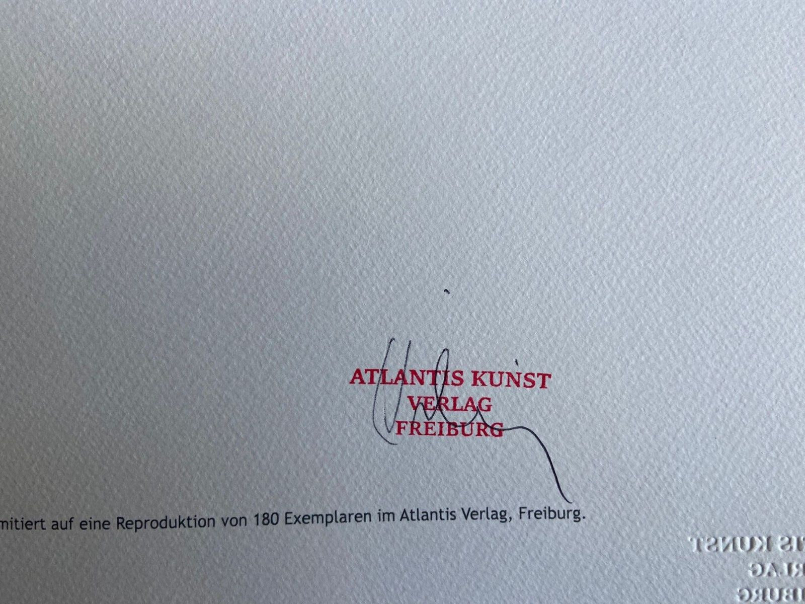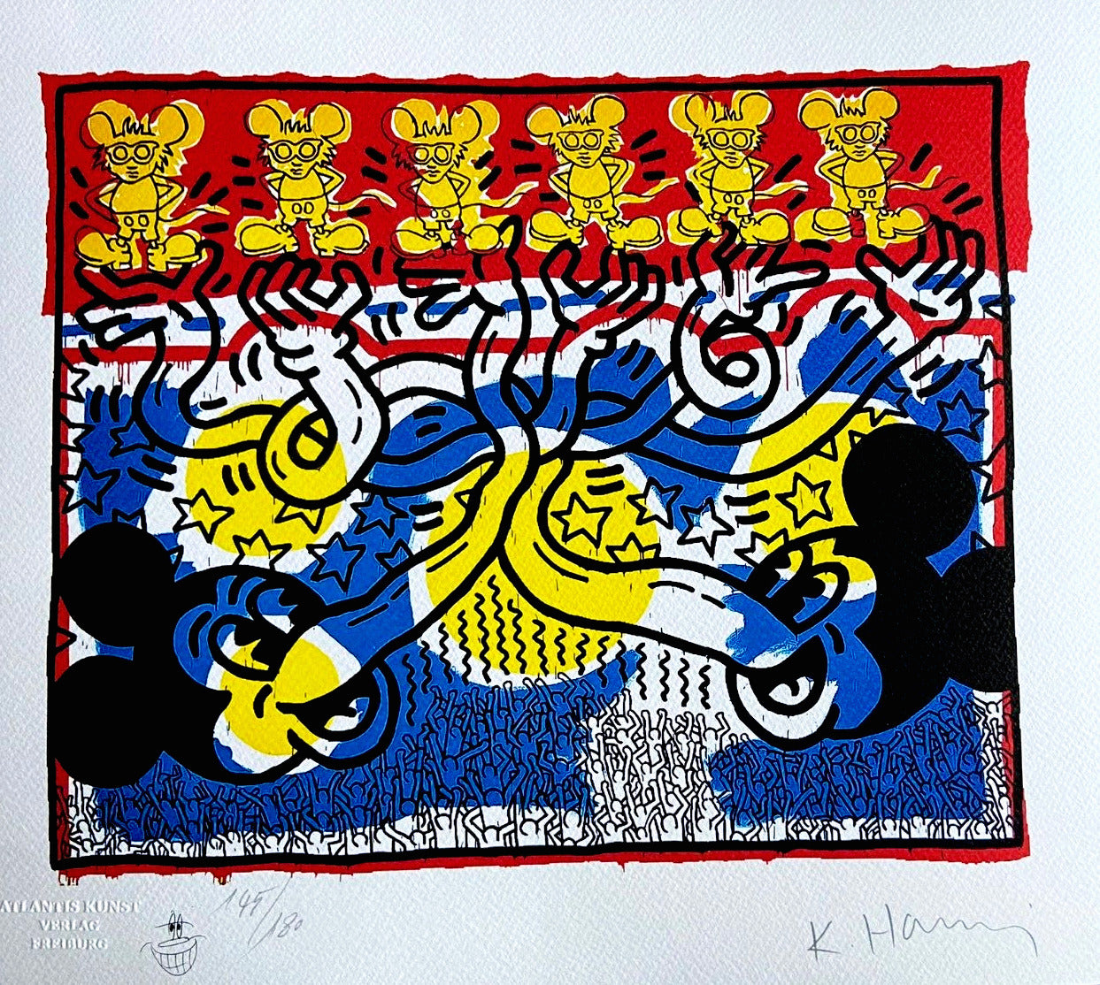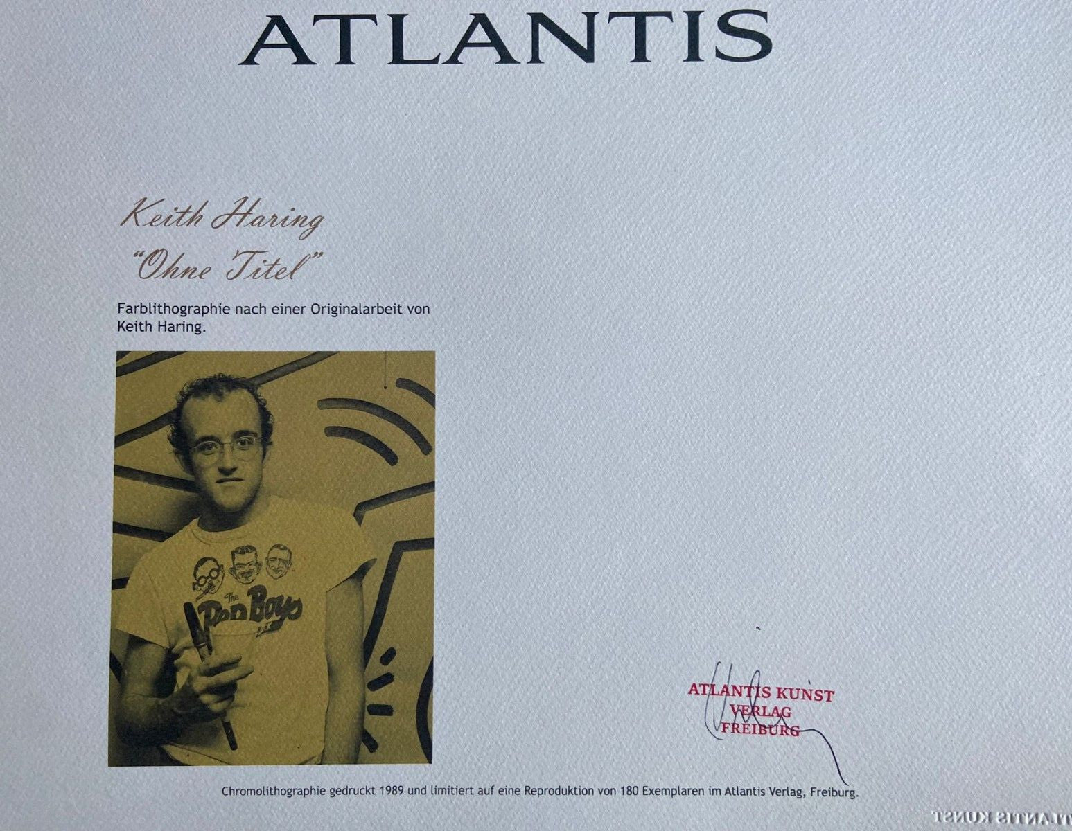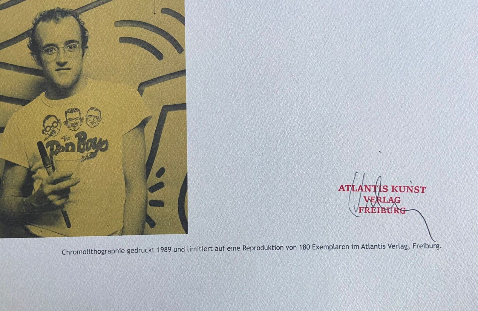 Keith Haring Lithograph Signed Numbered Stamp, Jeff Koons Keith Haring " without title " Chromolithography printed in 1989 and reproduced in 180 specimens by Atlantis Verlag, Freiburg 32 x 36 cm Keith Haring signature on the plate Dry and authentic stamp of the publishing house The progressive number could be different from the published one. Atlantis Kunst Verlag Freiburg Keith Haring "without title" Chromolithography printed in 1989 and reproduced in 180 specimens by Atlantis Verlag, Freiburg 32 x 36 cm Keith Haring signature on the plate Dry and authentic stamp of the publishing house The progressive number could be different from the published one. Atlantis Kunst Verlag Freiburg