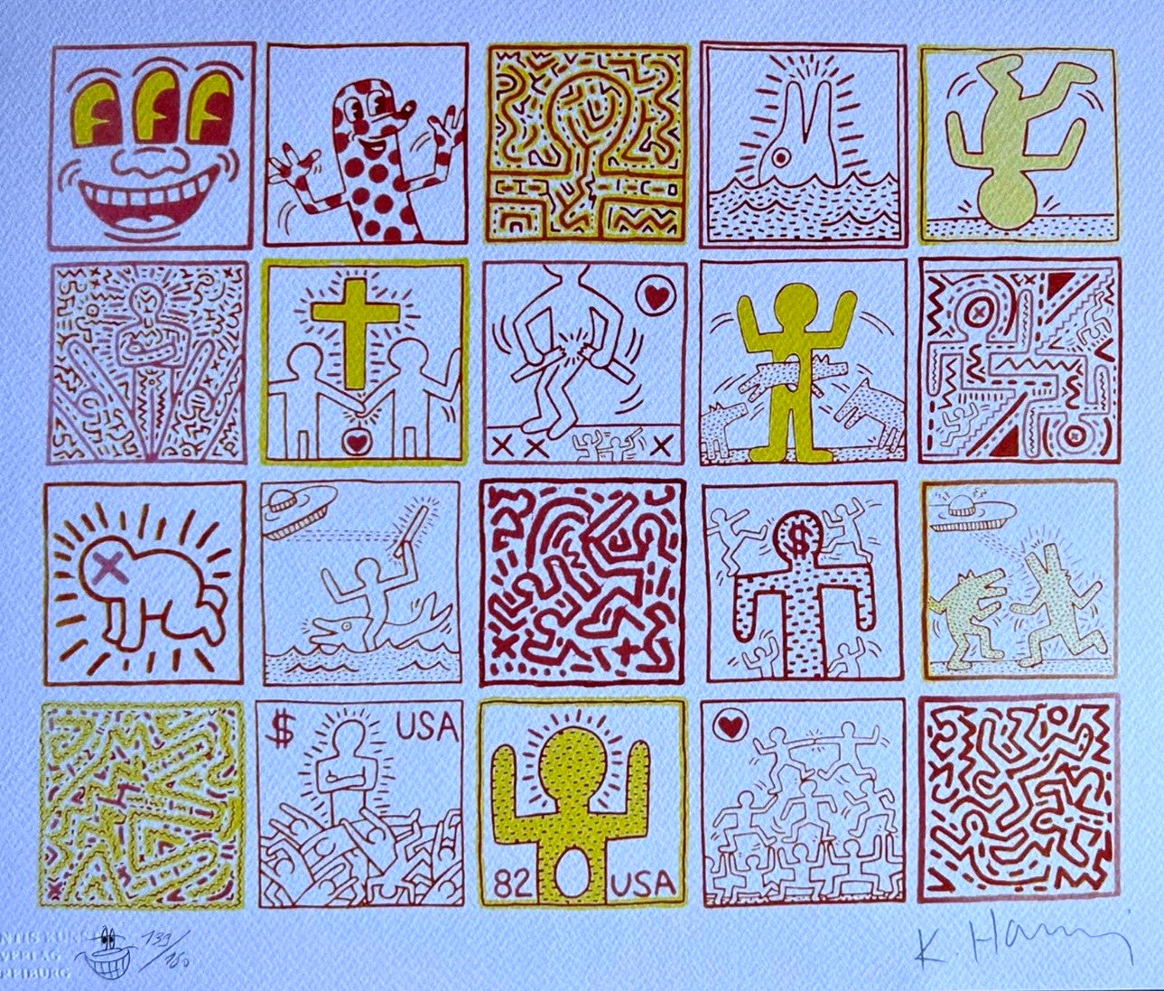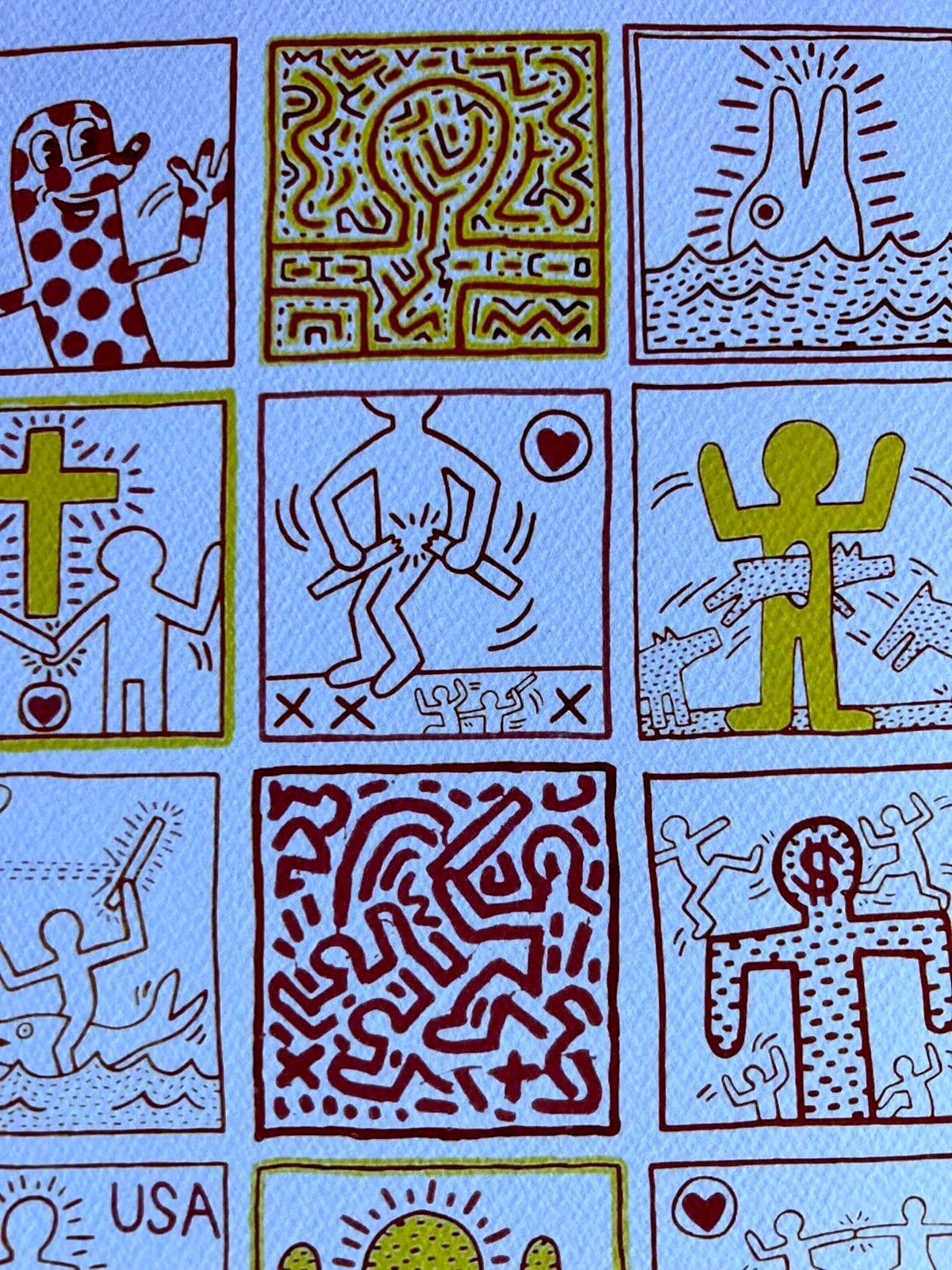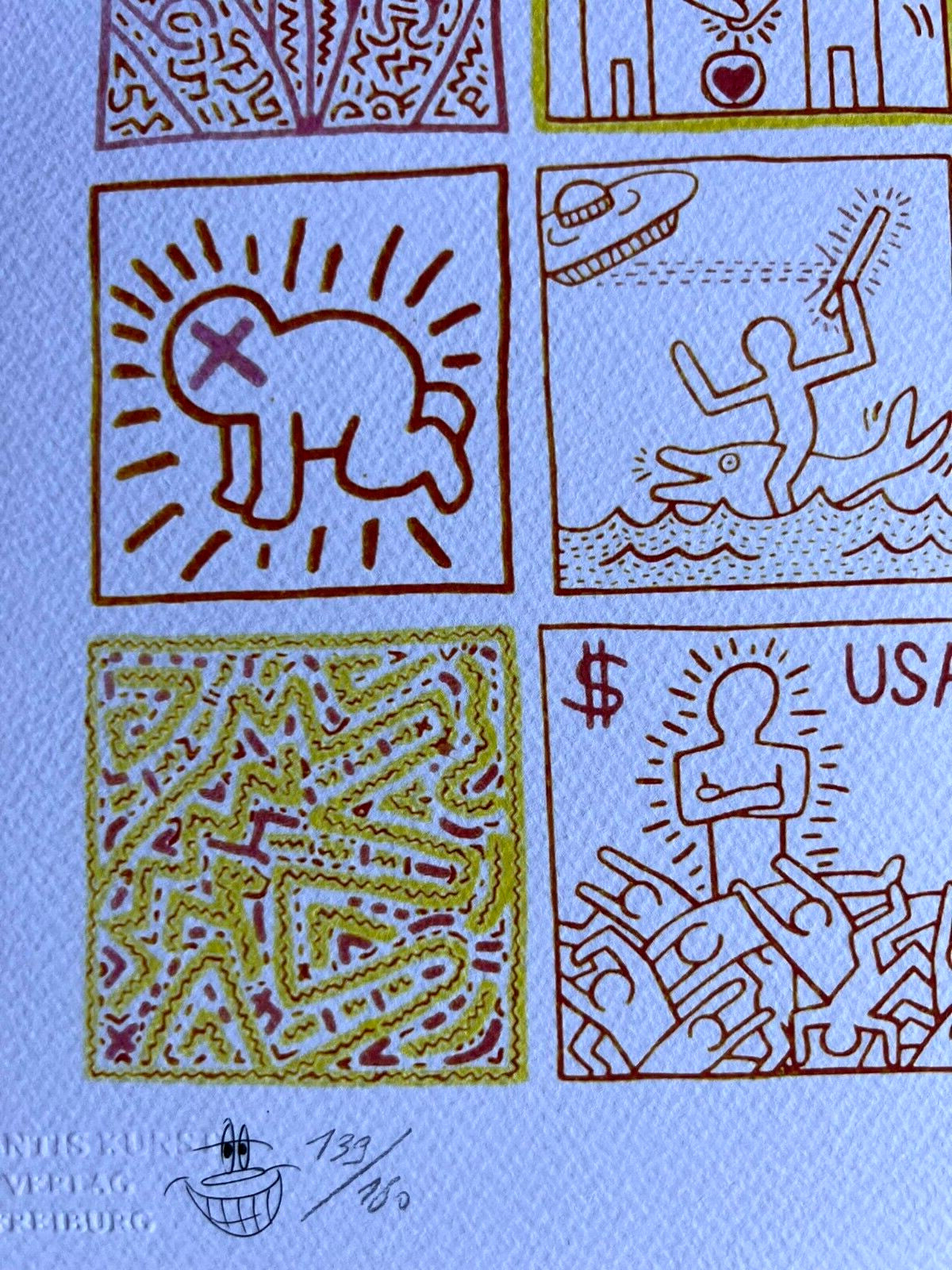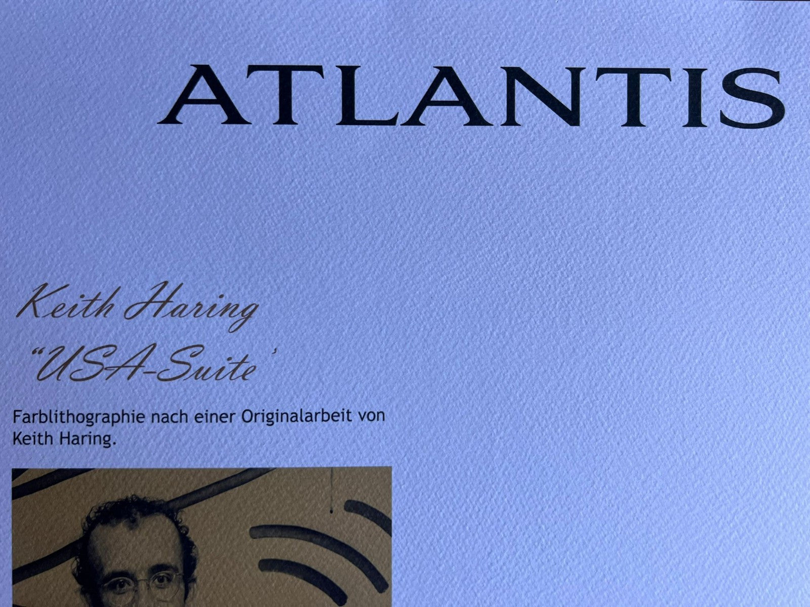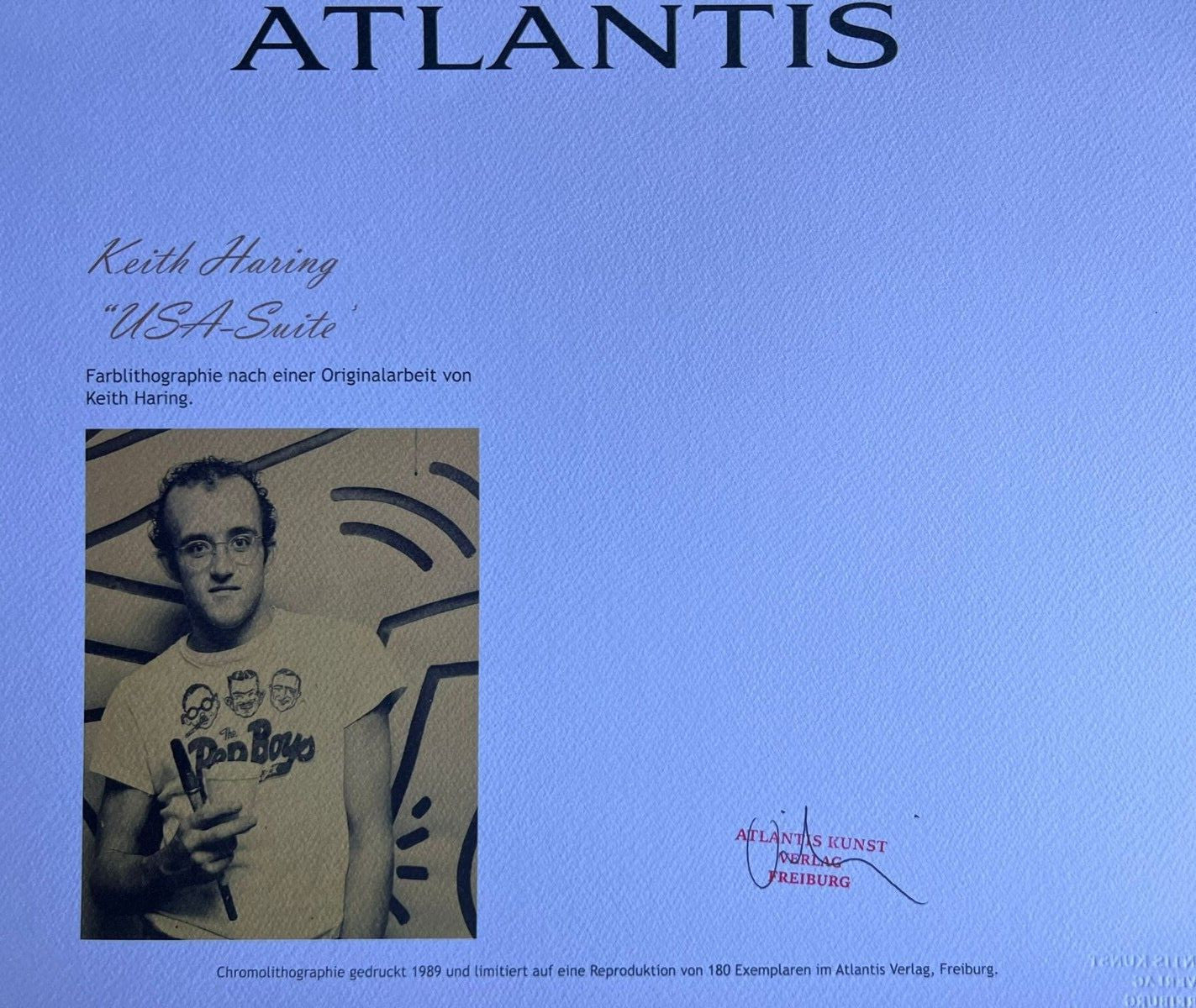 Keith Haring Lithograph ''USA-Suite'' COA Signed In Pen Numbered In Pencil Keith Haring "USA-SUITE " Chromolithography printed in 1989 in 180 specimens by Atlantis Verlag, Freiburg 33 x 40 cm Keith Haring signature on the slab Dry and authentic stamp of the publishing house The progressive number could be different from the published one. Atlantis Kunst Verlag Freiburg Keith Haring "USA-SUITE" Chromolithography printed in 1989 in 180 specimens by Atlantis Verlag, Freiburg 33 x 40 cm Keith Haring signature on the slab Dry and authentic stamp of the publishing house The progressive number could be different from the published one. Atlantis Kunst Verlag Freiburg