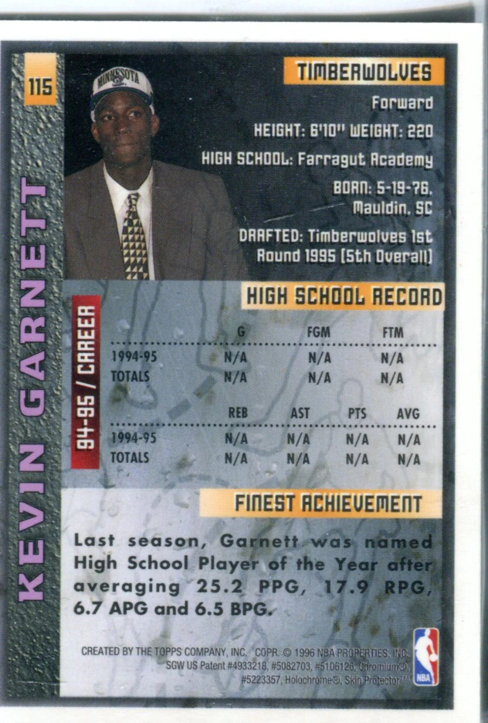Kevin Garnett 1996 Topps Finest Rookie Card