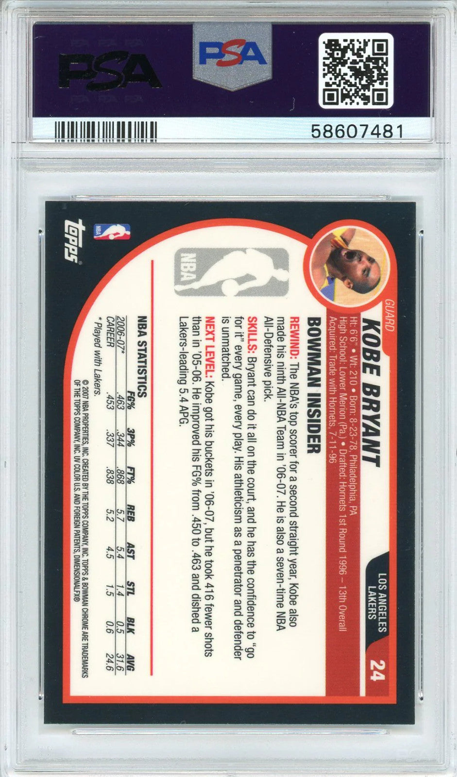 Kobe Bryant 2007 Bowman Chrome Card #24 (Psa Mint