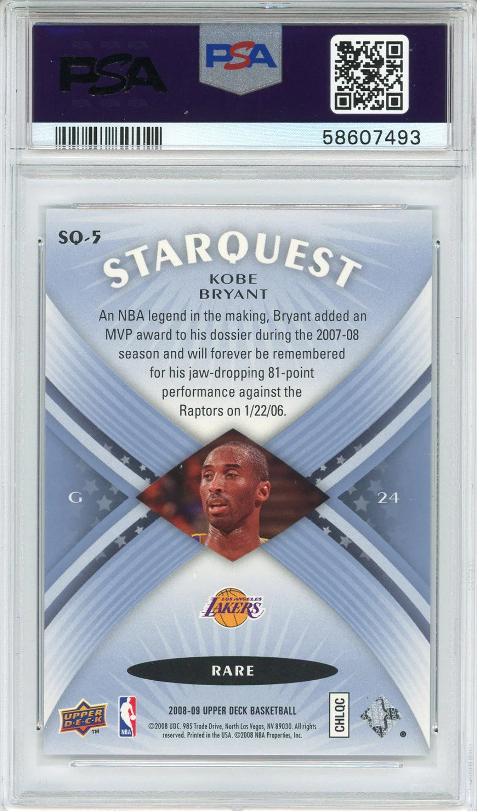 Kobe Bryant 2008 Upper Deck Starquest Cyan Card #Sq-5 (Psa Nm-Mt 8)