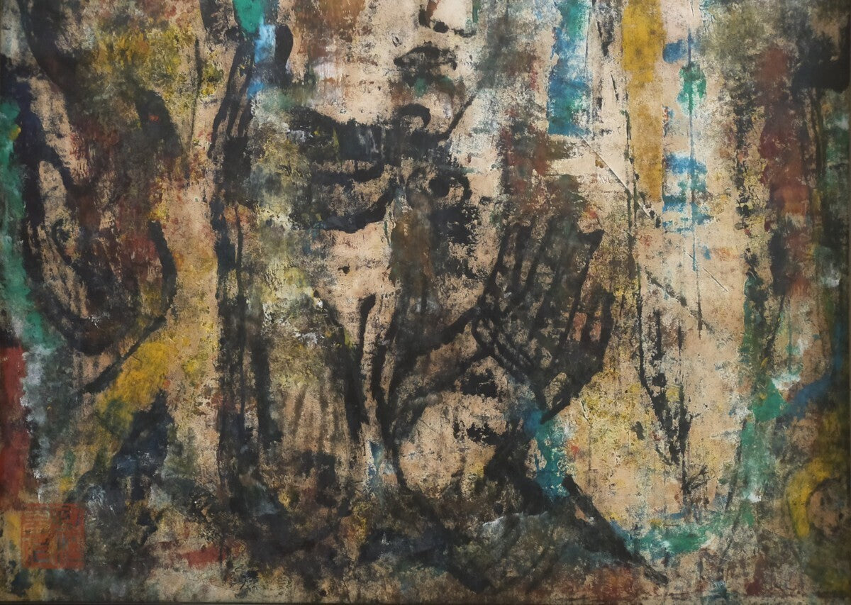 Kong Baiji (China) - Stone Buddha Unique Oil Stick On Paper Original Painting