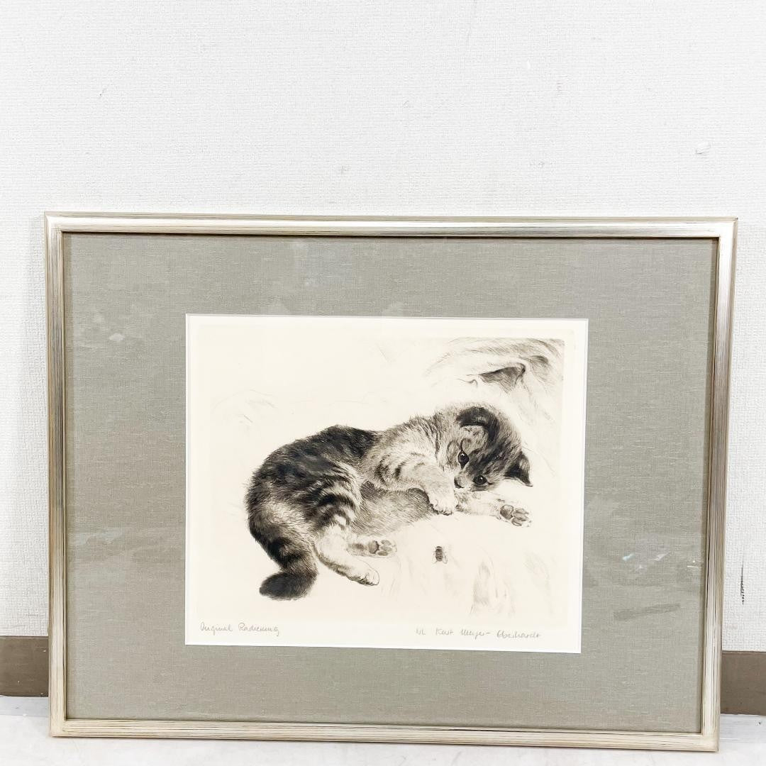 Kurt Meyer-Eberhardt Etching Cat Kitten Original Radierung Signed 4/97 Framed