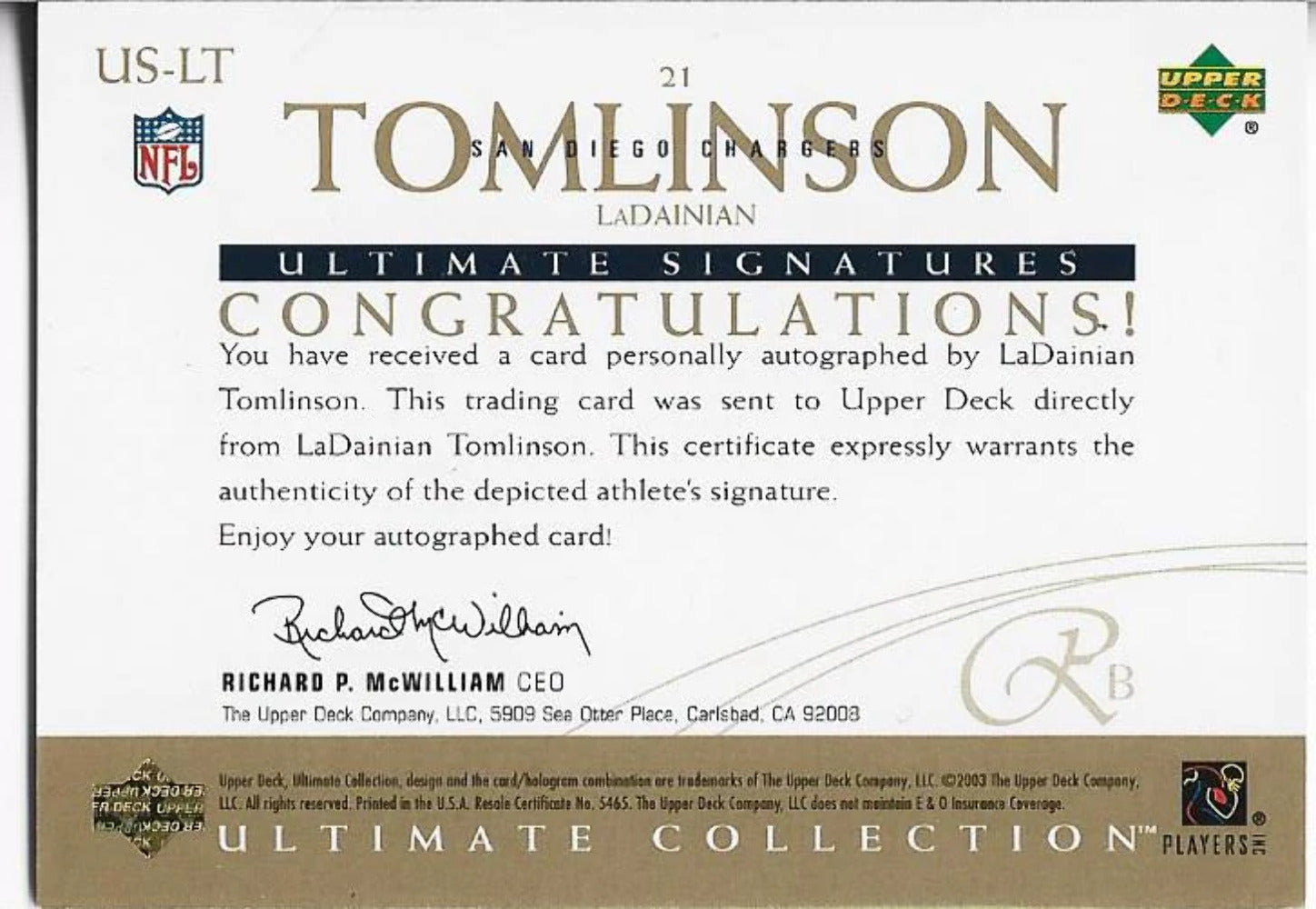Ladainian Tomlinson 2003 Upper Deck Autographed