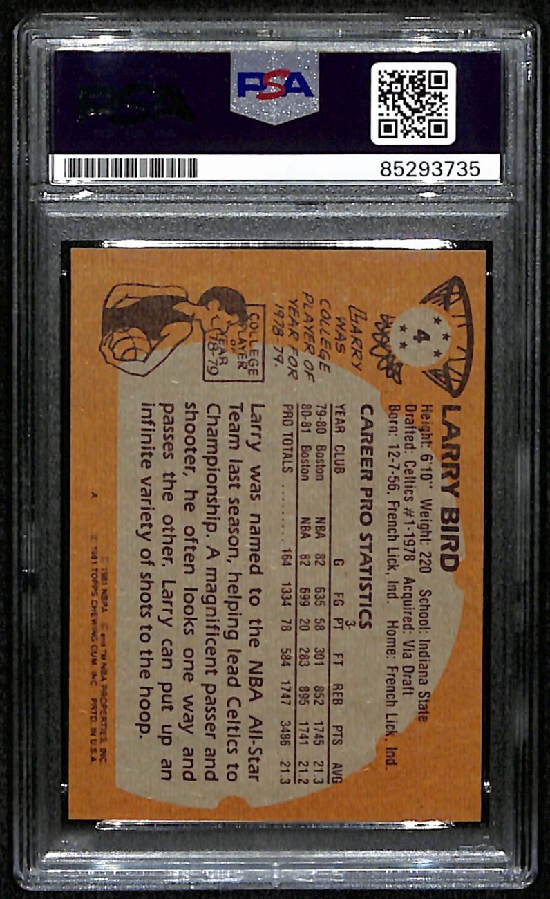 Productname: Larry Bird HOF Signed/Autographed 1981 Topps Card #4 Celtics PSA/