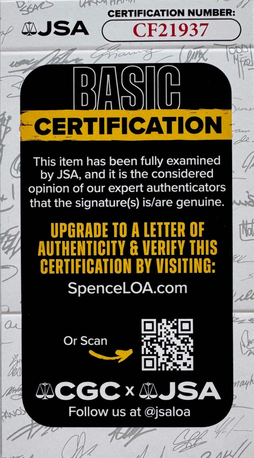 Brand: James Spence Authentication (JSA)