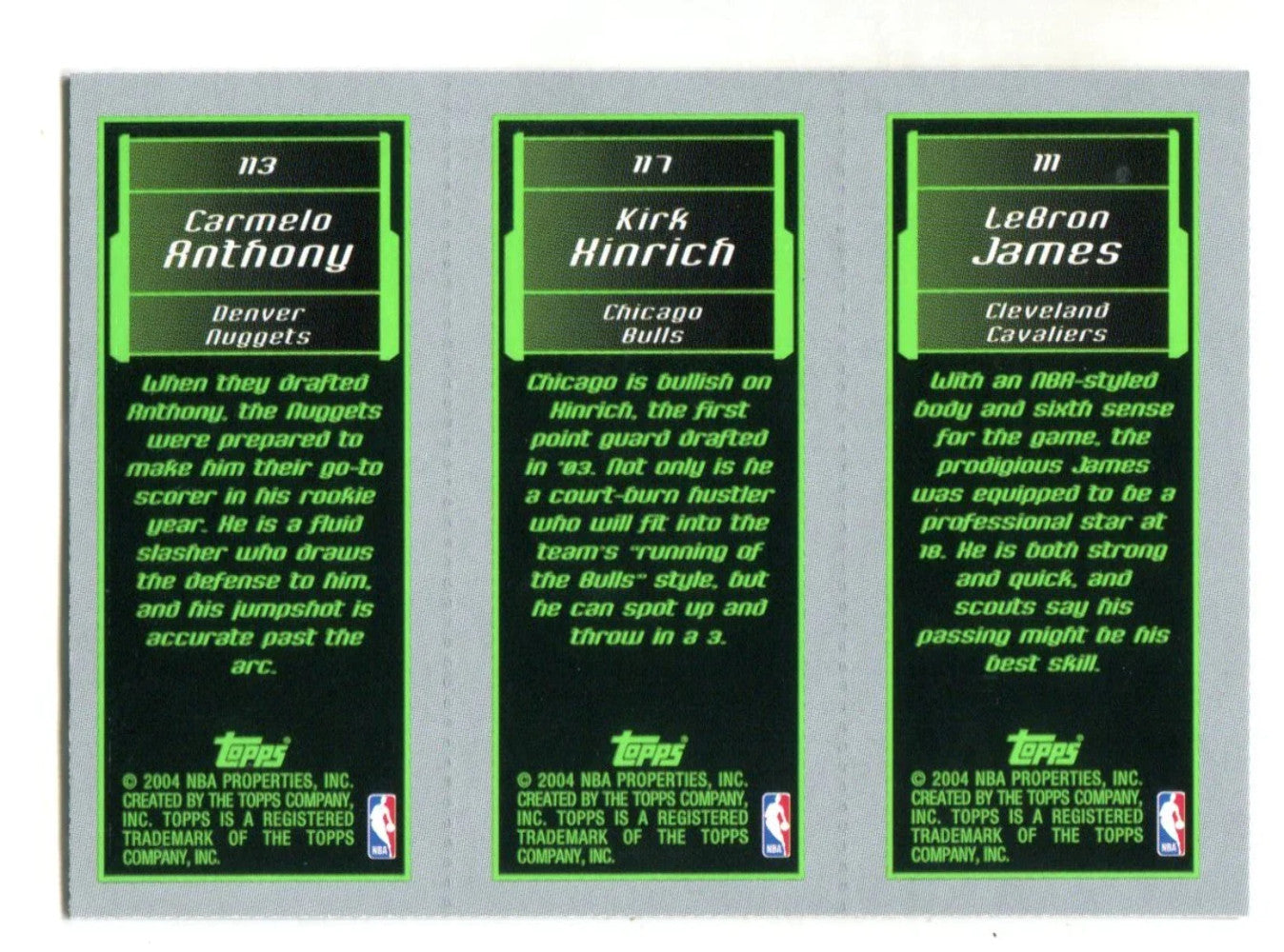 Lebron James/K.Hinrich /Carmelo 2004 Topps Matrix Trio Card