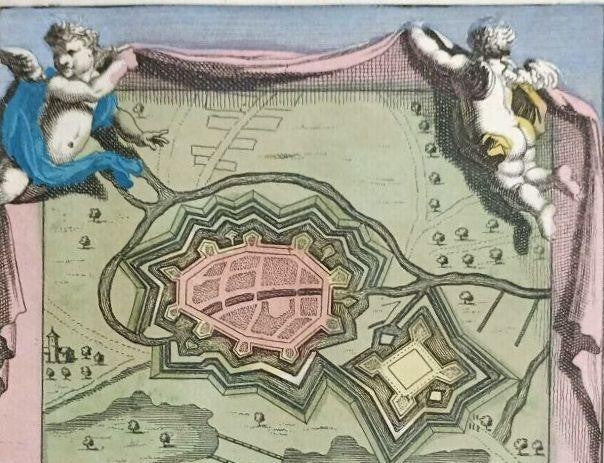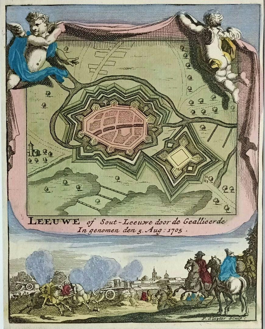Leeuwe (Leuven) Daniel De La Feuille 1735 Hand-Colored Map Ratelband Framed Coa