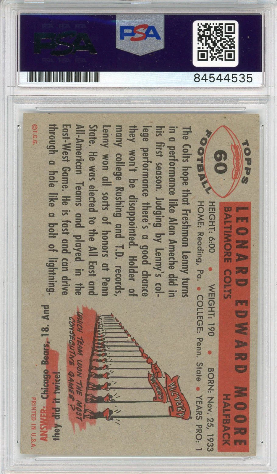 Lenny Moore "Hof 75" Autographed 1956 Topps Card #60 (Psa Auto 10)