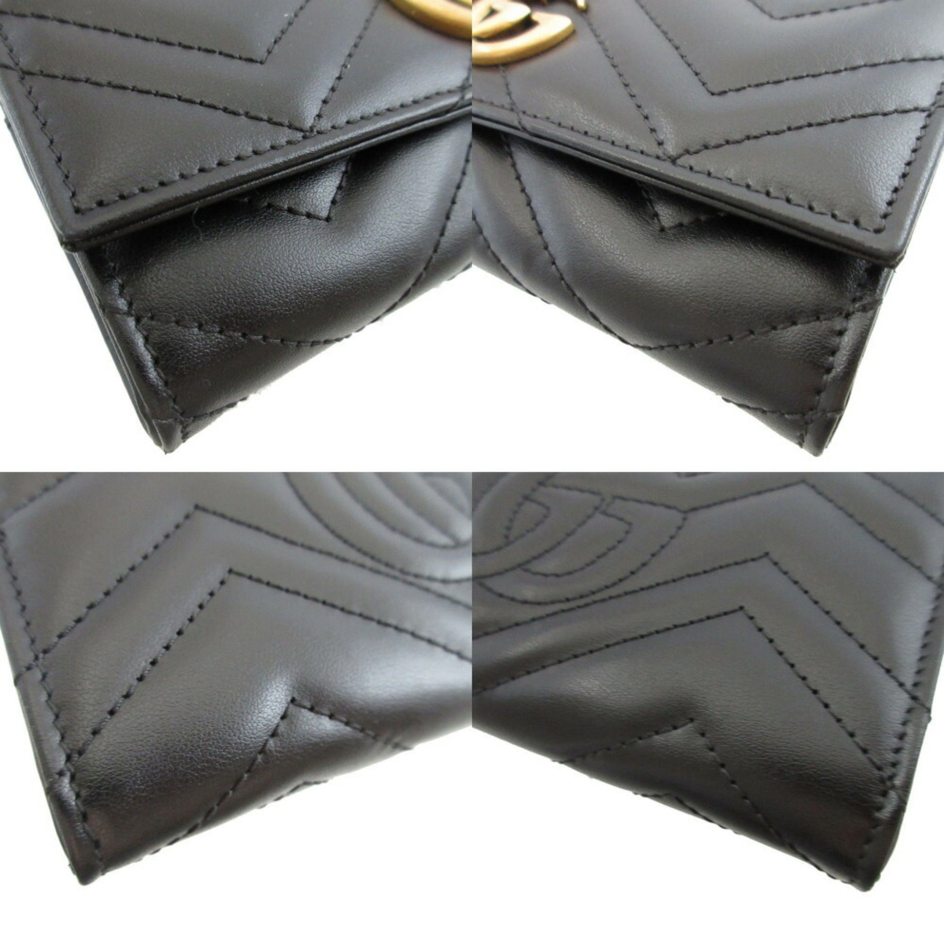 Like New Gucci Gg Marmont 443436 Leather Black Bi-Fold Long Wallet 0847Gucci