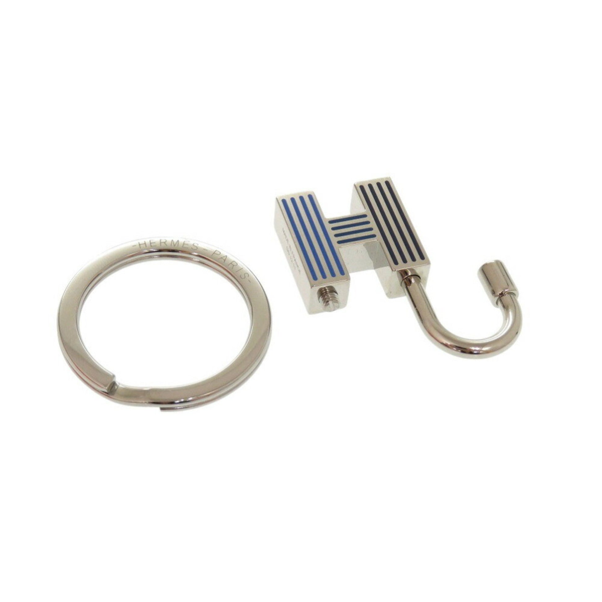 Like New Hermes Quiz Rainbow Kanade 077309Fp Metal Silver Blue Keychain 1085Hermes