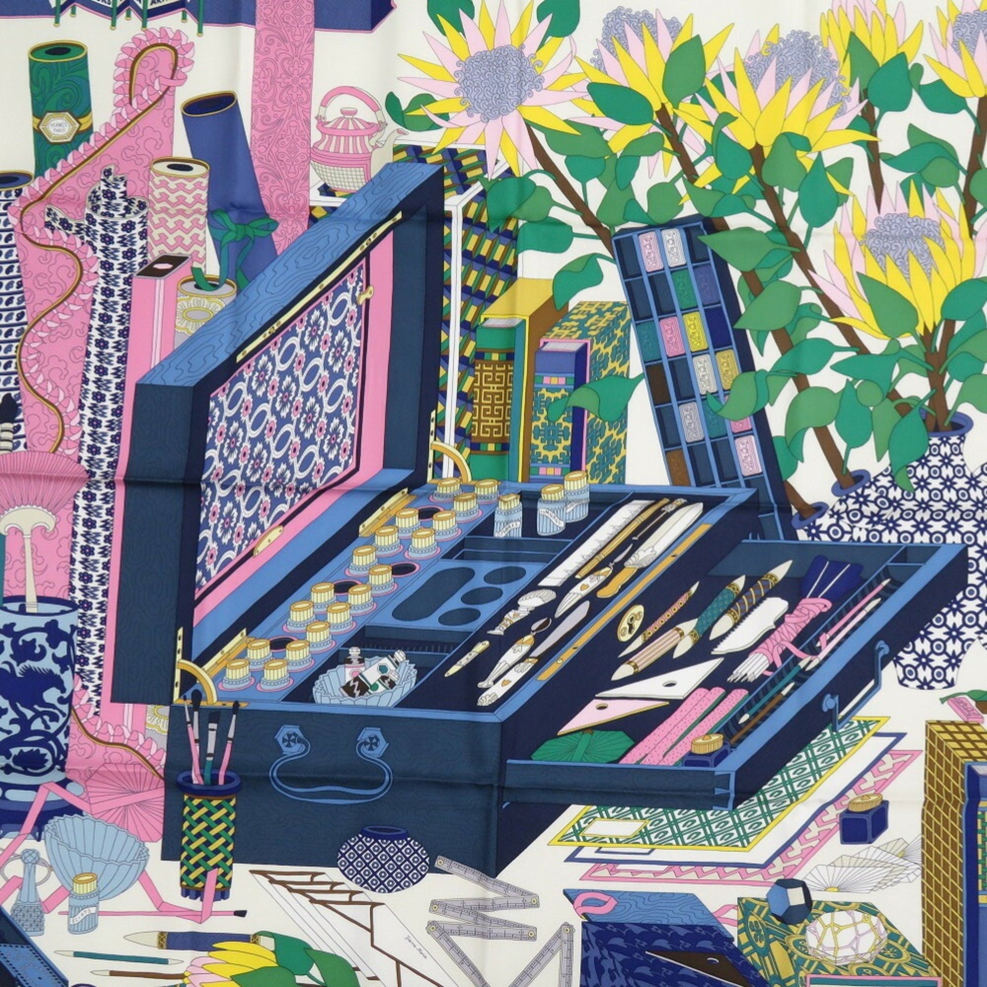 Like New Herms Carr 90 "Les Tresors D'Un Artiste" Silk Multicolor Scarf Muffler 0717Hermes