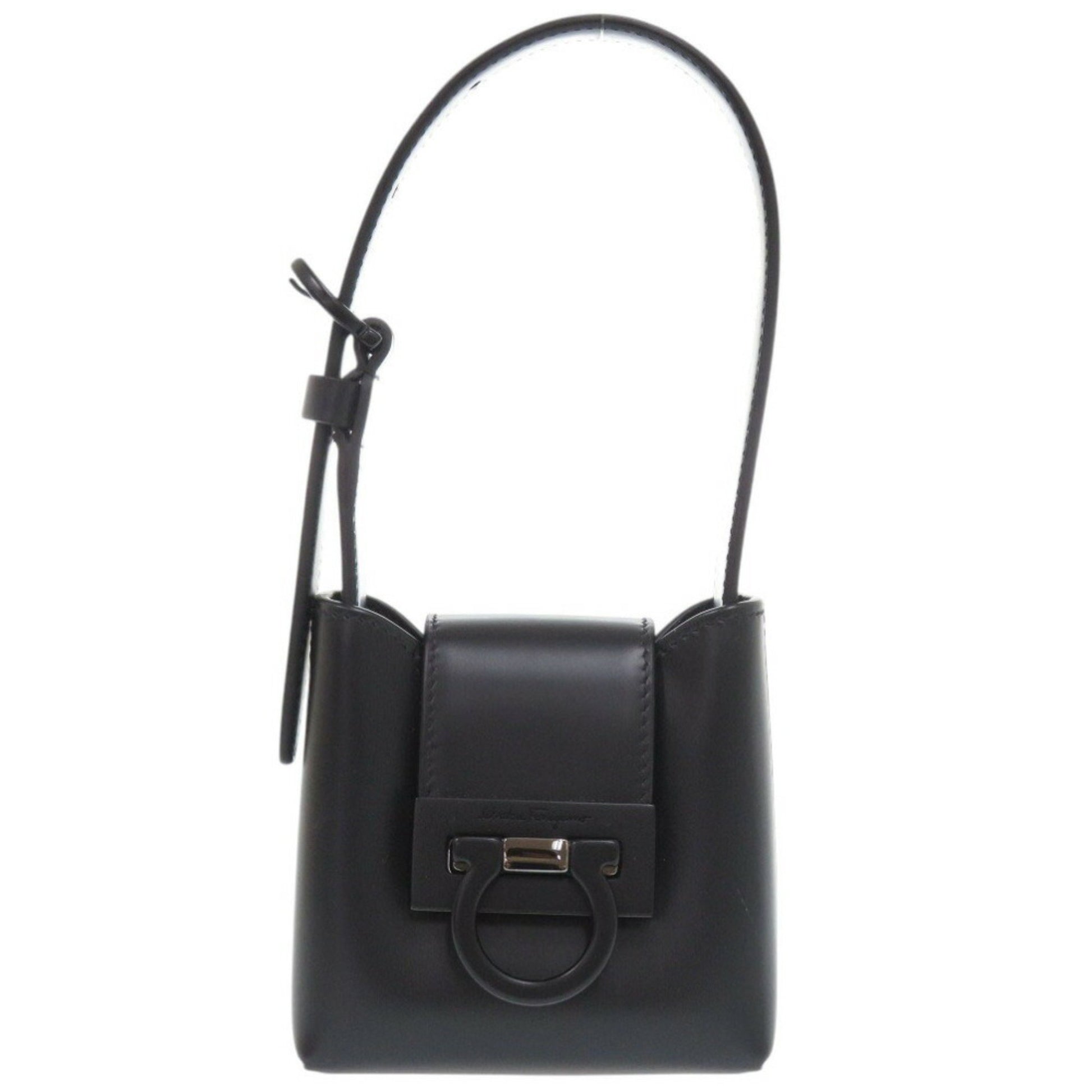 Like New Salvatore Ferragamo Gancini Trifoglio Leather Black Handbag