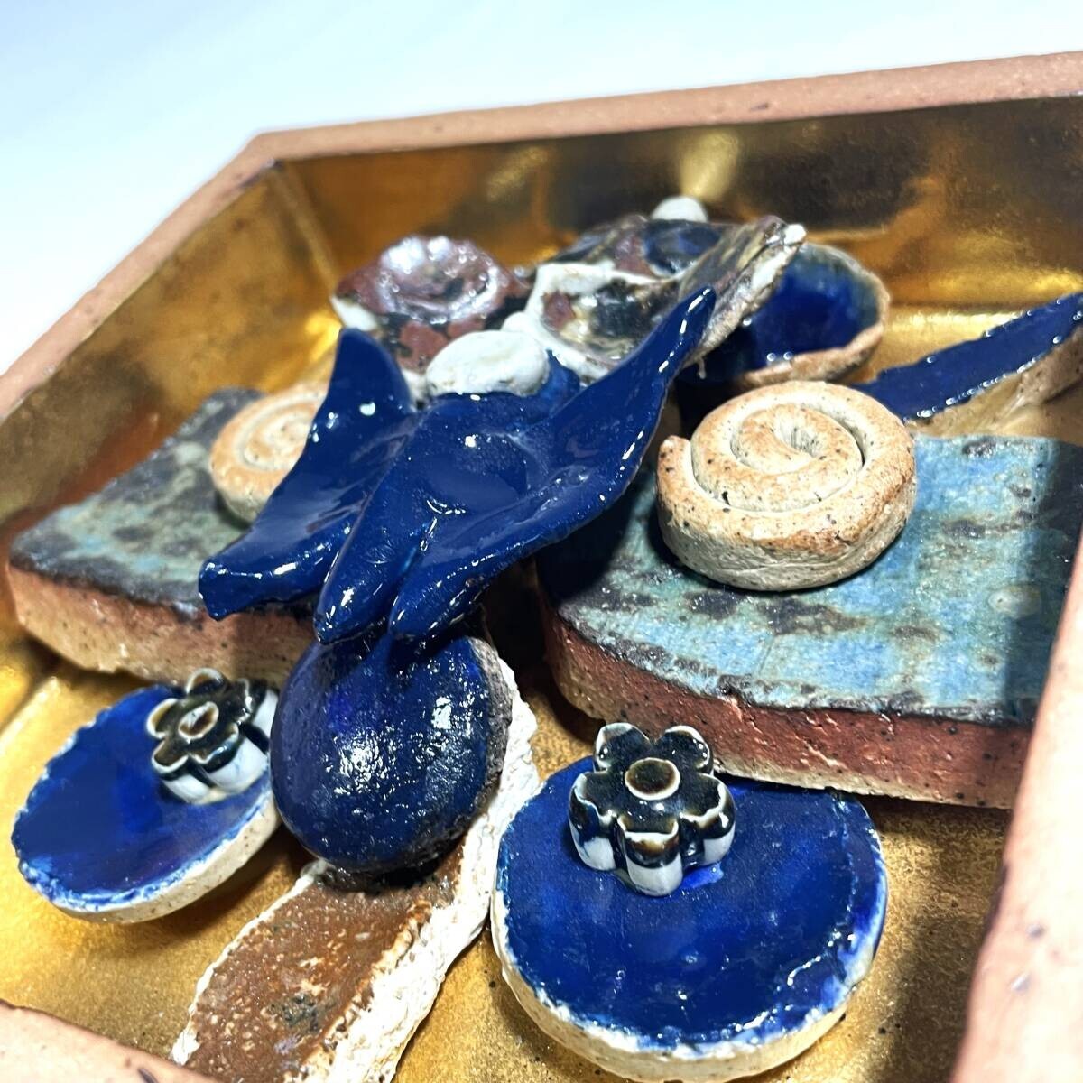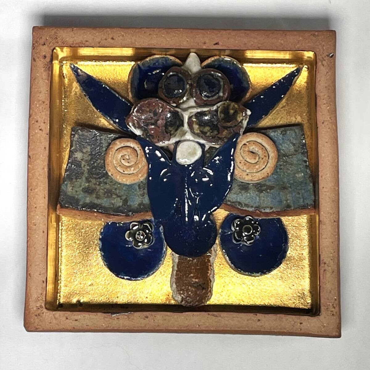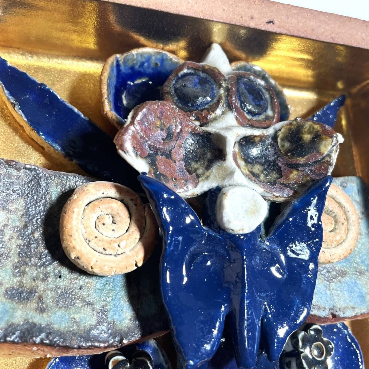 Lisa Larson Unique Piece Ceramic Wall Art With Gold Decoration Signed Sweden