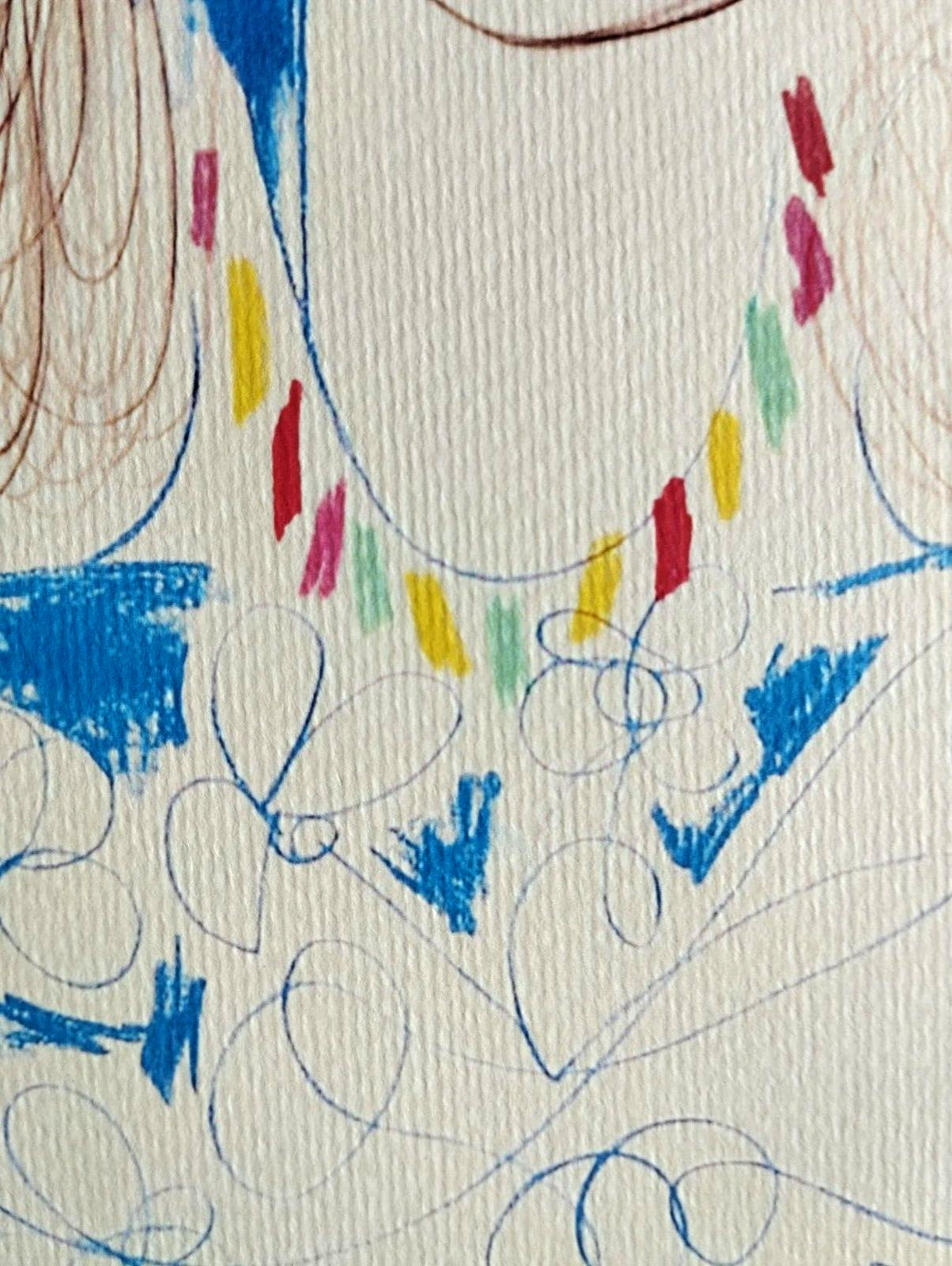 This lithograph by Pablo Picasso, titled 'Portrait of a girl,' is a signed and numbered chromolithography from 1978, measuring 30 x 41 cm, produced in an edition of 180 by Atlantis Verlag.