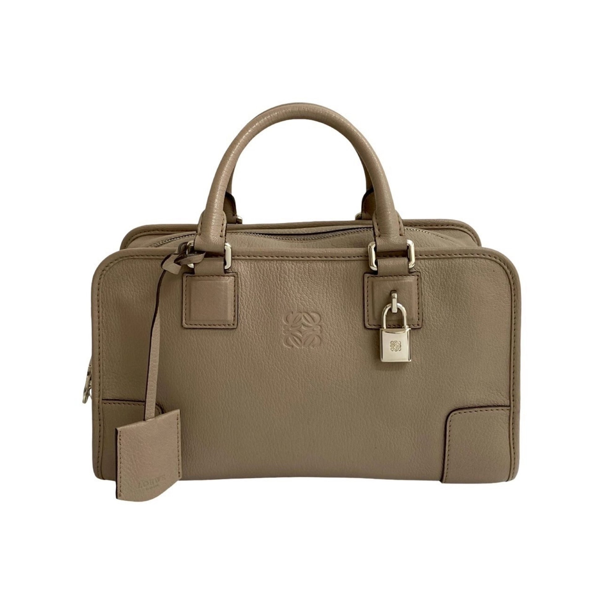 Loewe Amazona 28 Anagram Logo Embossed Leather Handbag/Mini Boston Bag Beige 37953