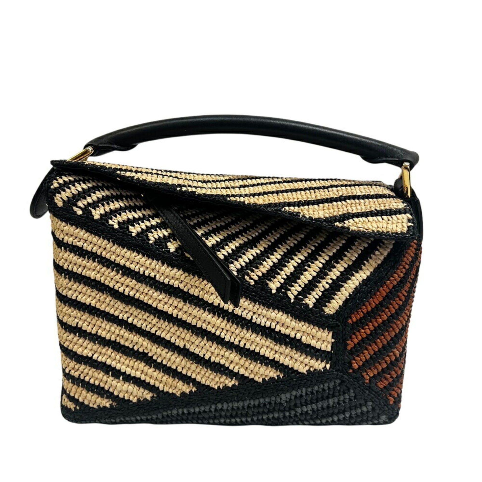 Loewe Puzzle Edge Small Shoulder Bag In Raffia And Calfskin