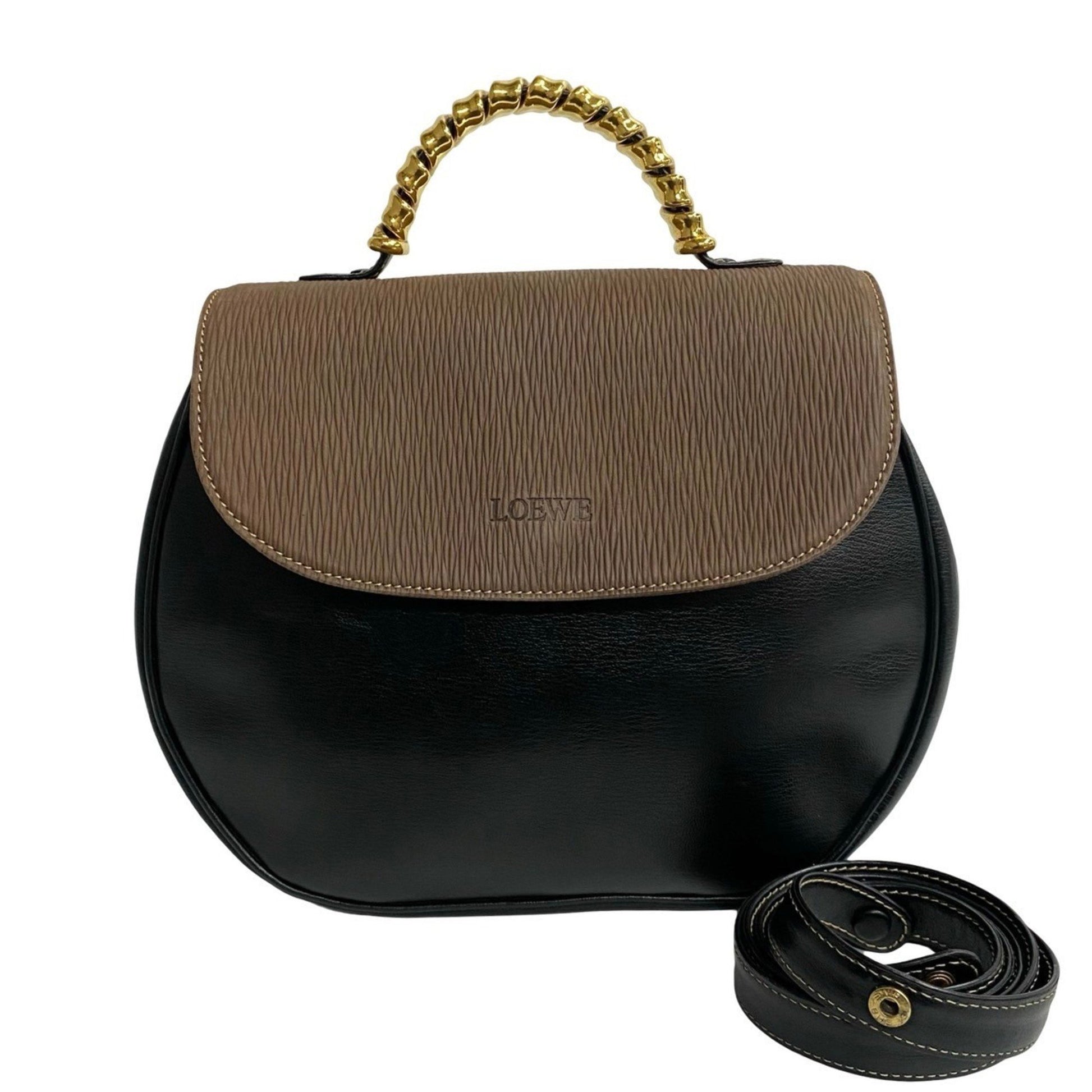 Loewe Velzquez Logo Leather Genuine 2-Way Handbag/Shoulder Bag In Two-Tone Black