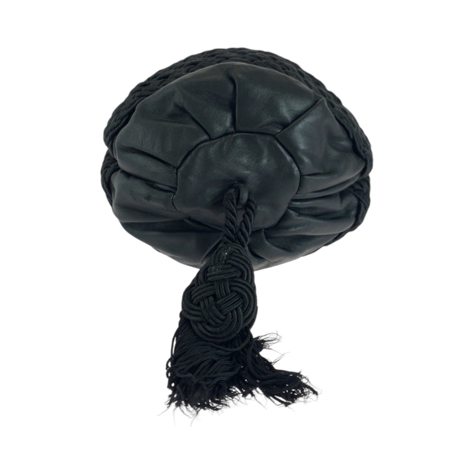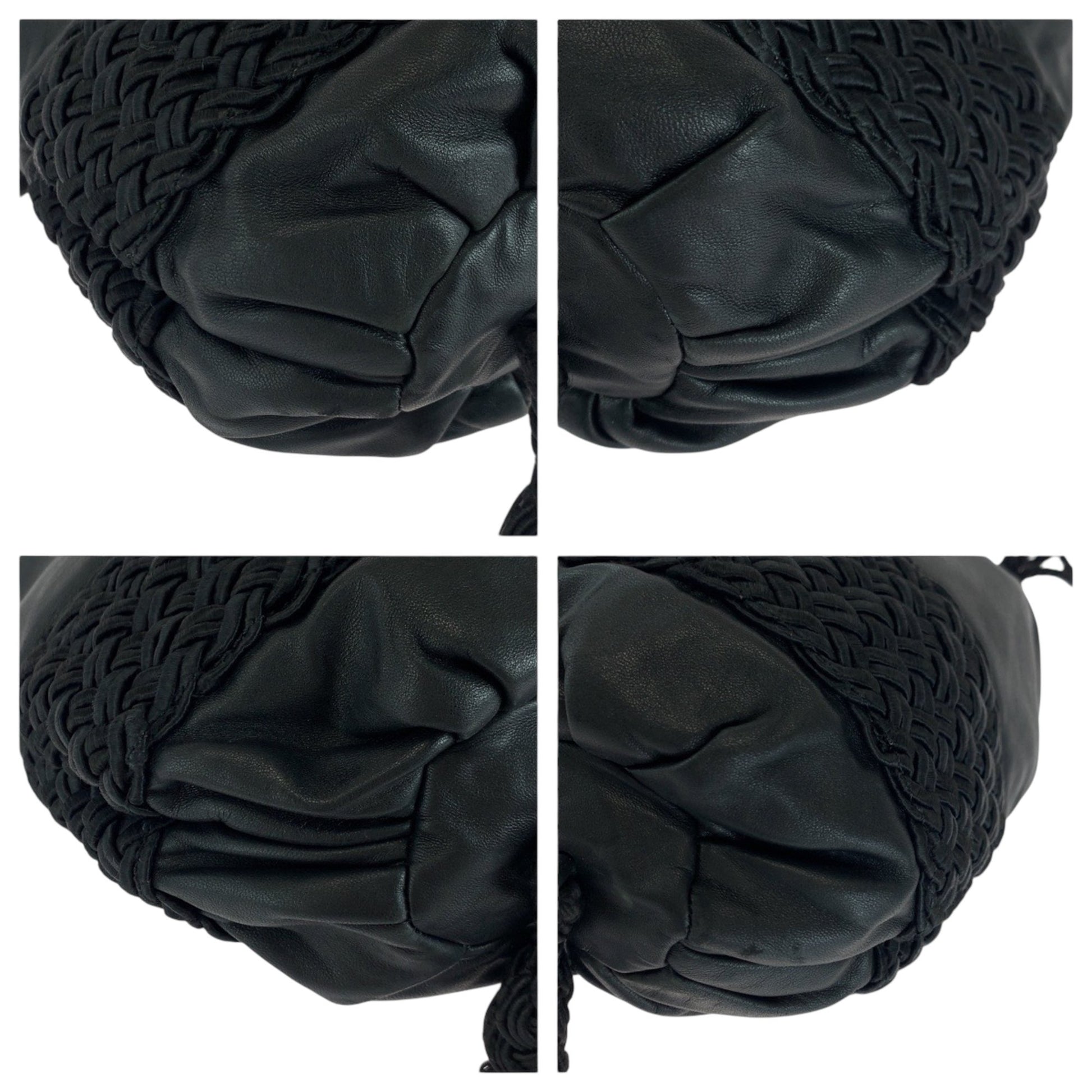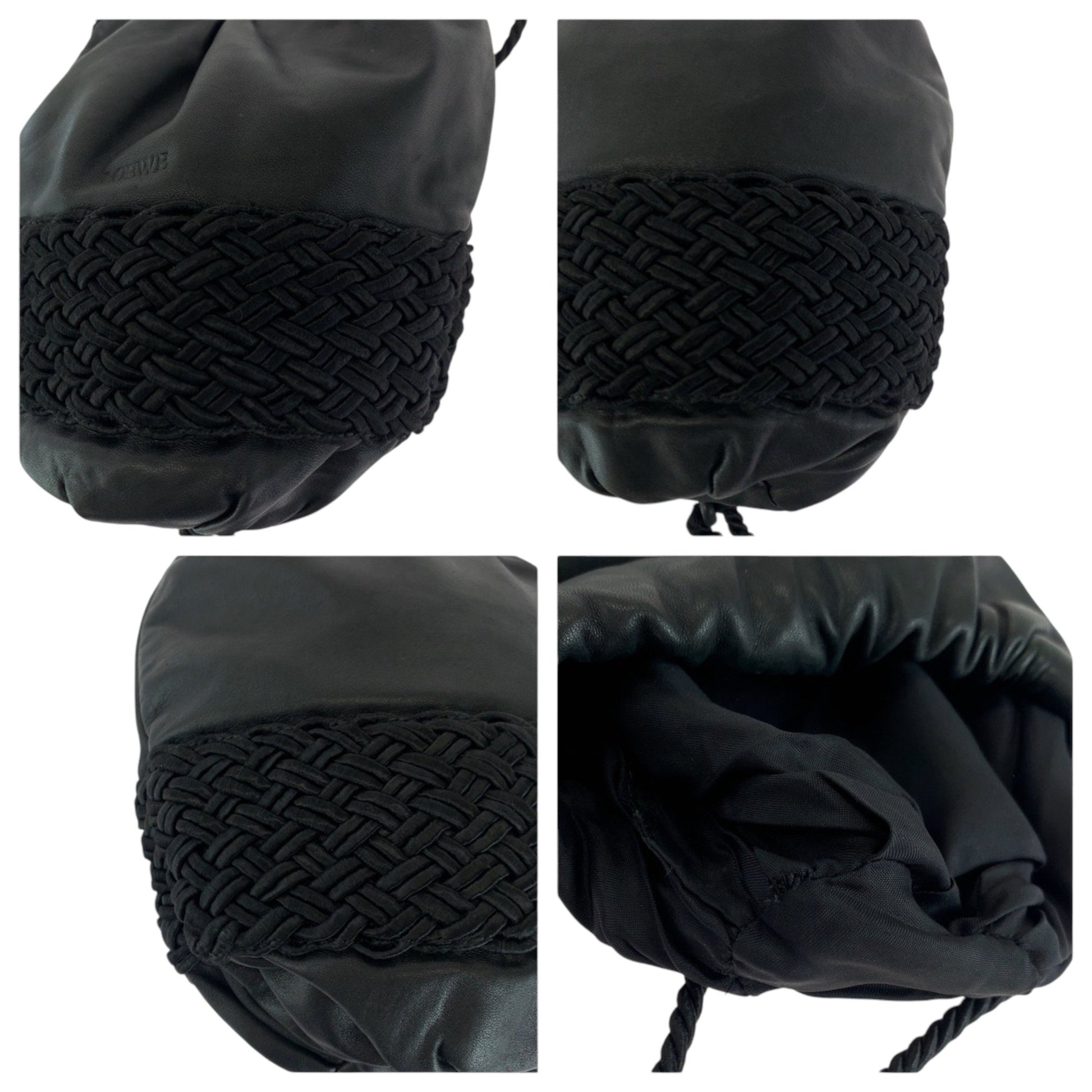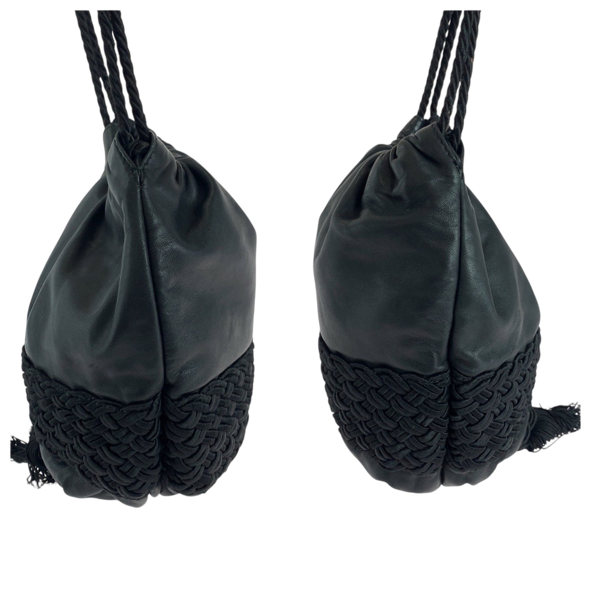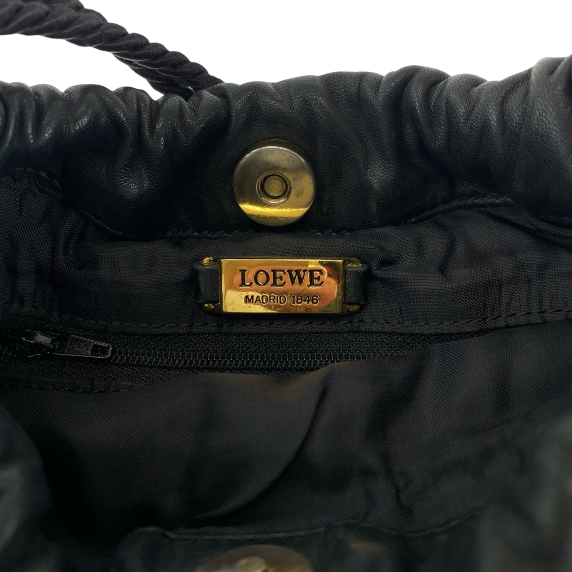 Loewe Vintage Logo Fringe Black Leather Shoulder Bag Drawstring