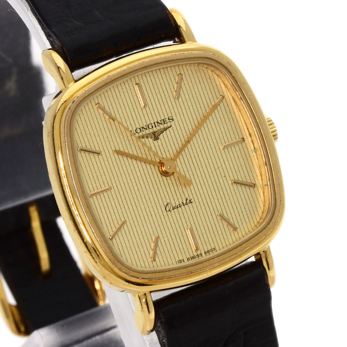 Longines Watches Quartz Gold Plated, Leather Gold Square Face Gold Dial Women