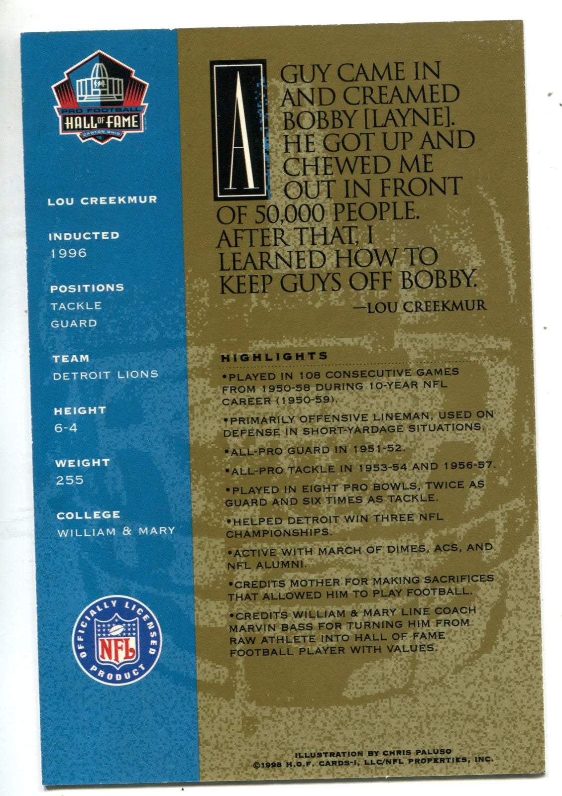 Lou Creekmur 1998 Autographed Gold Hall Of Fame Cardinscribed "HOF 96"**larger signature**