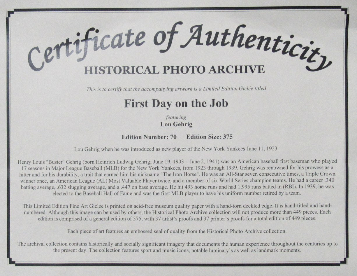 Lou Gehrig Hof Fine Art Lithographic Limited Numbered Print Yankees Framed 87169