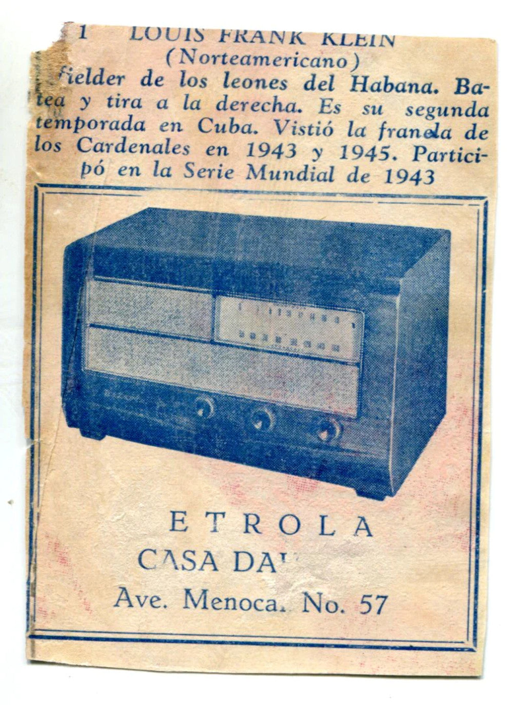 Louis Frank Klein #57 Havana Cuba Baseball Card