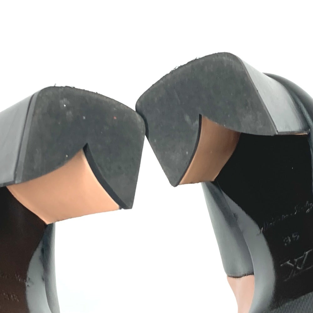 Louis Vuitton Boots Leather Black Shoes Shoes Monogram Heels By Color Women 35