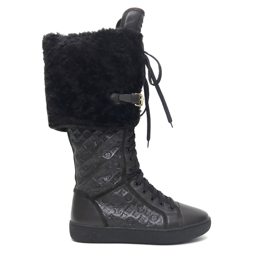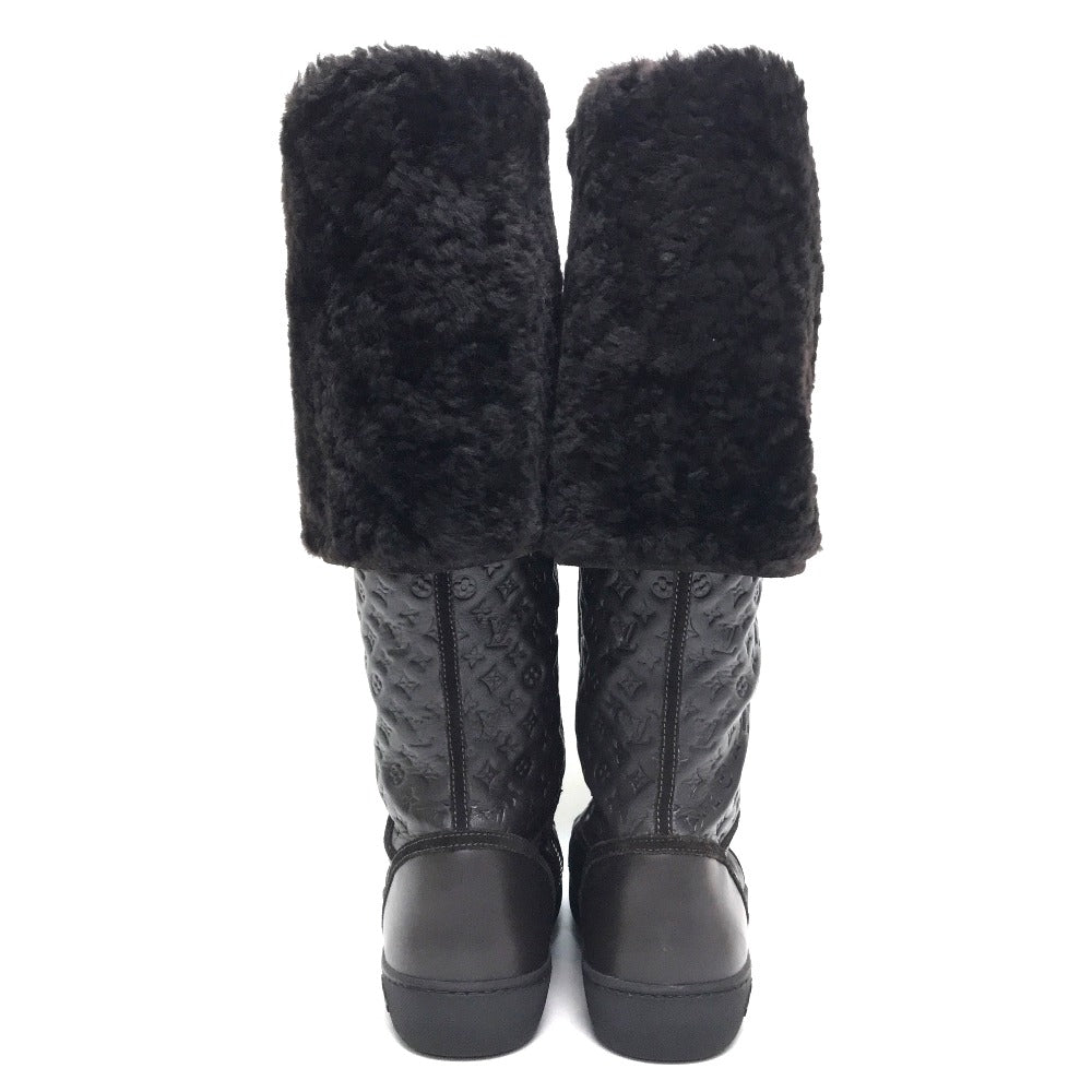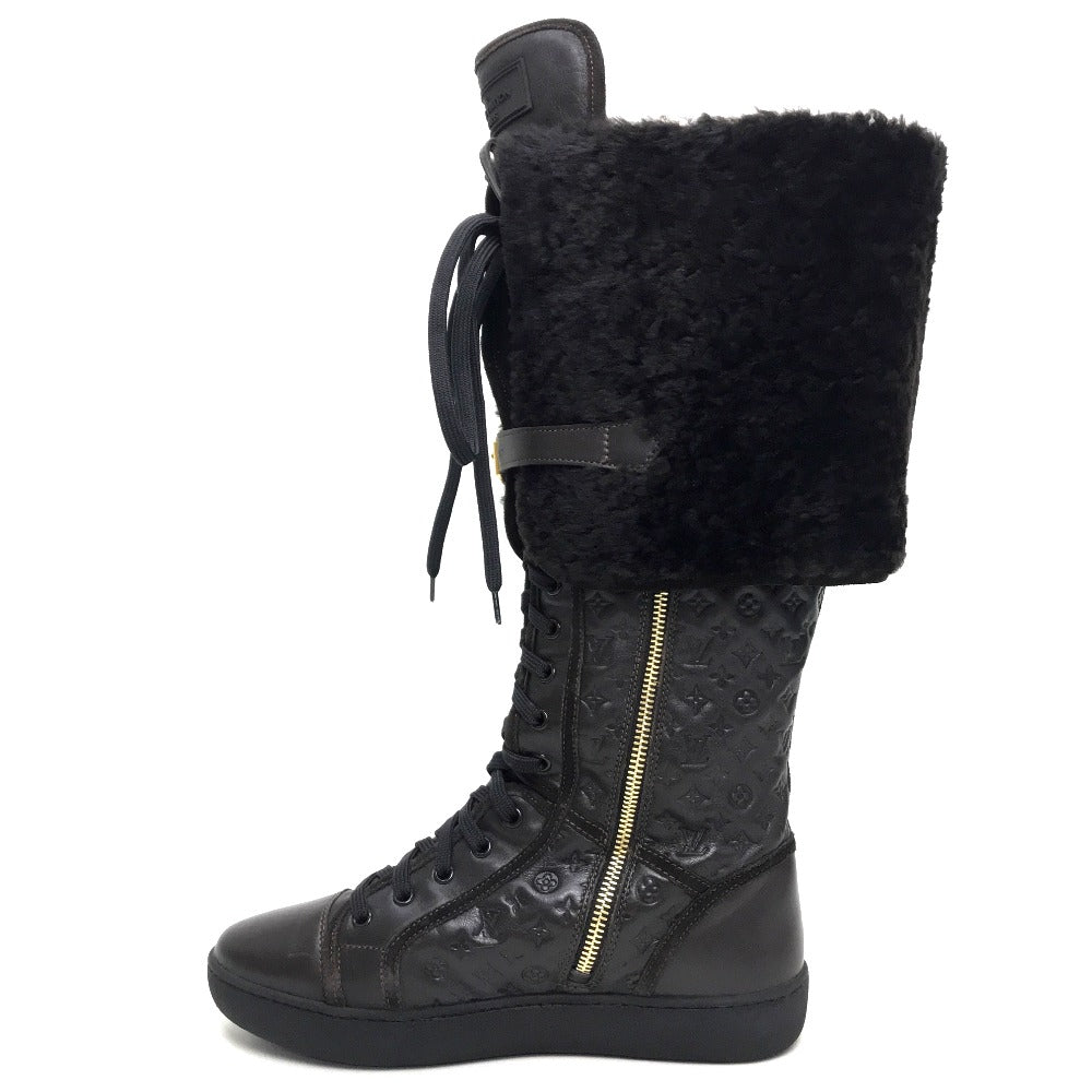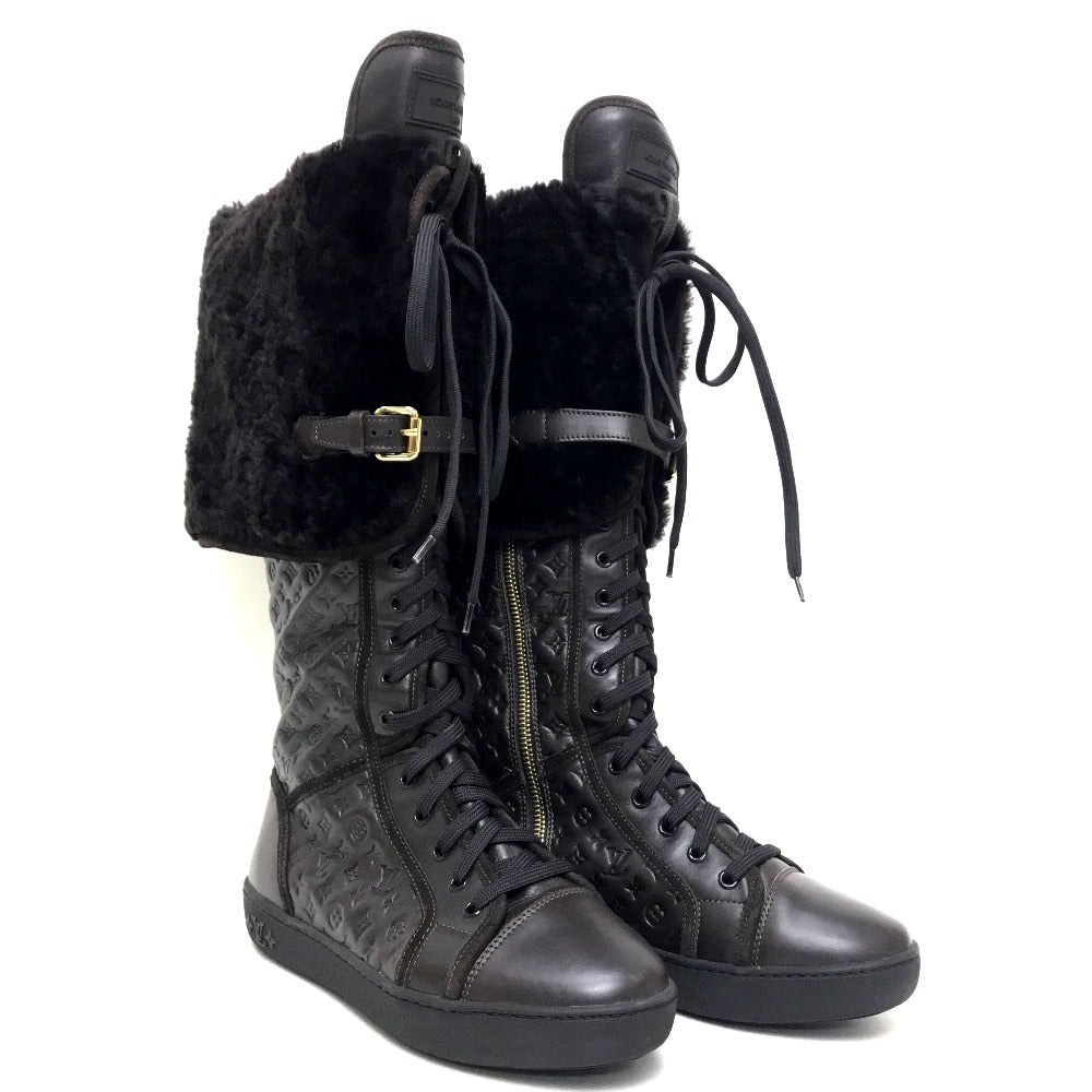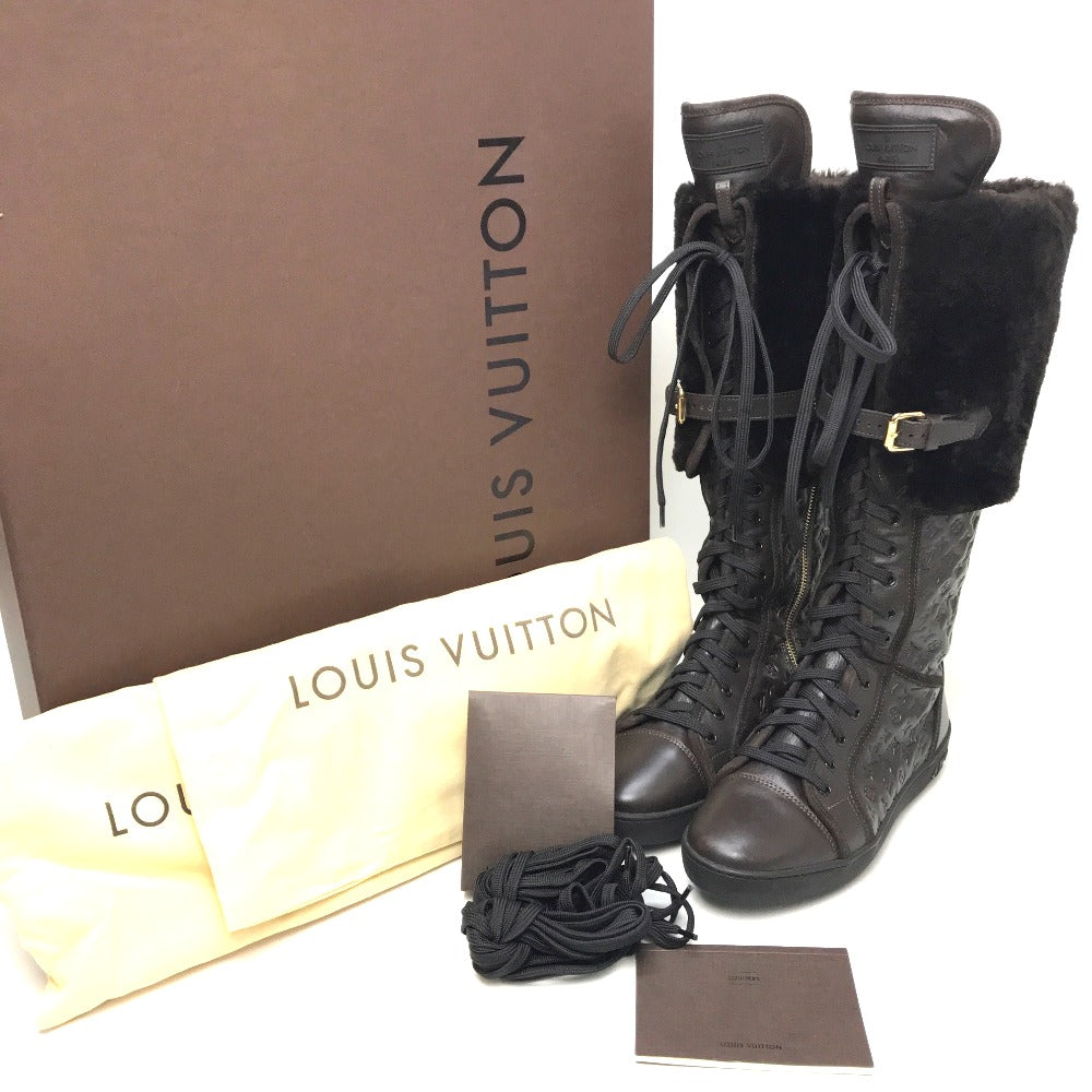 Louis Vuitton Boots Leather Brown Polka Lv Embossing Women 35.5