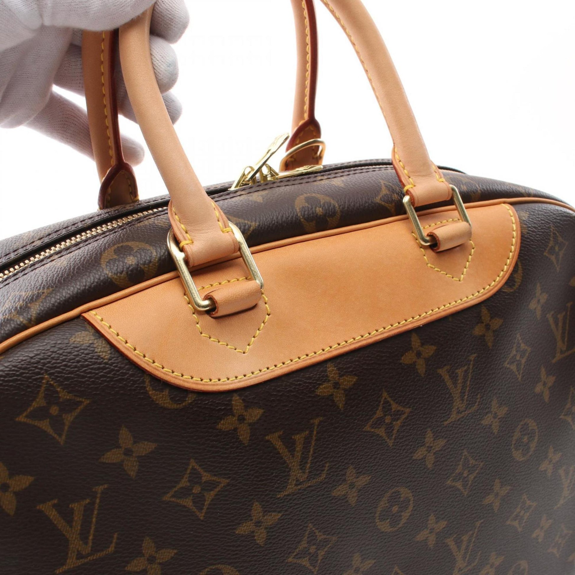 Louis Vuitton Deauville Bowling Vanity Handbag Coated Canvas Leather Monogram