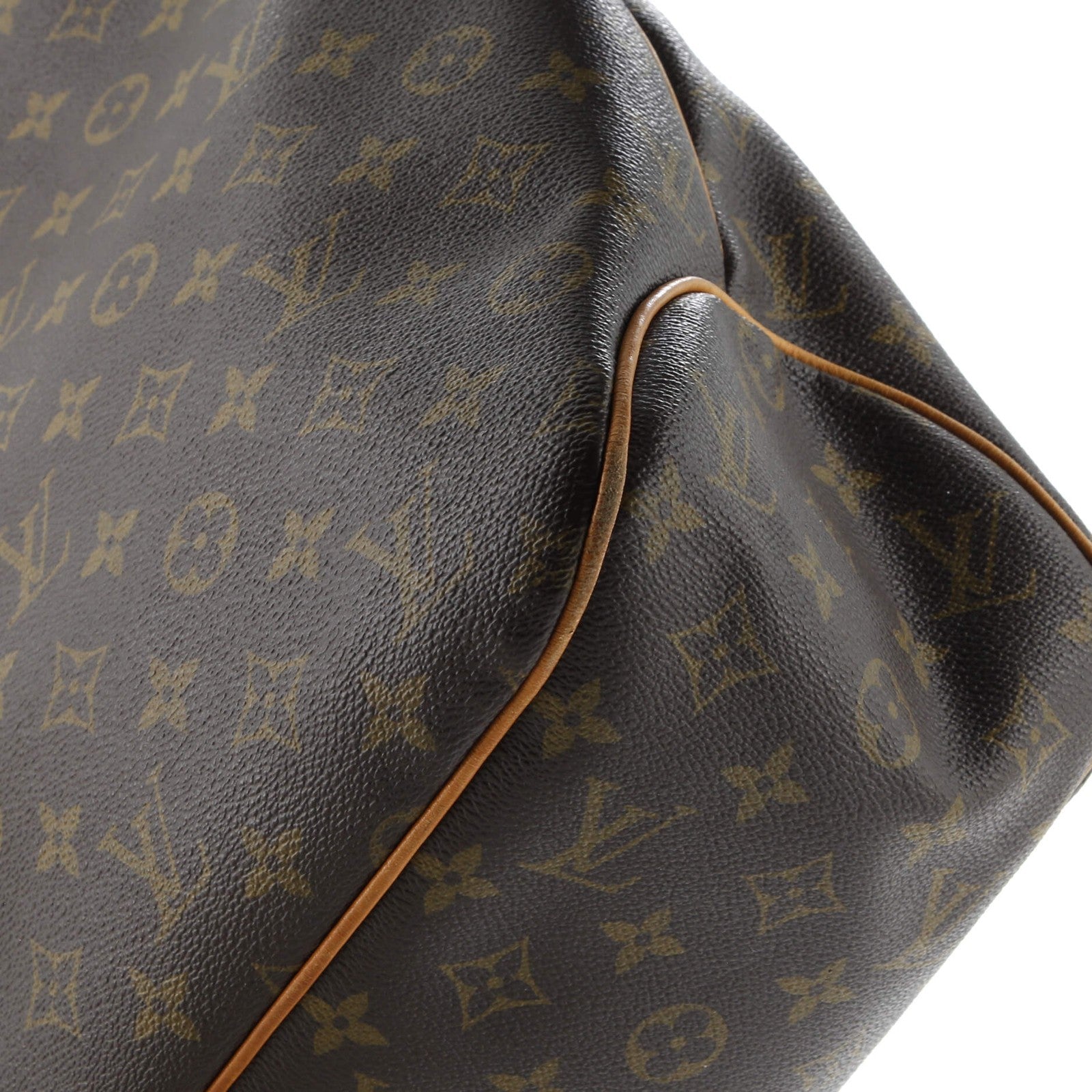 Condition: Good. Exterior: heavy edge wear, discoloration, corner wear, scuffs. Handles/Straps: heavy discoloration, creases, scuffs. Interior: pen marks, perfume odor. Hardware: scratches, minor tarnished