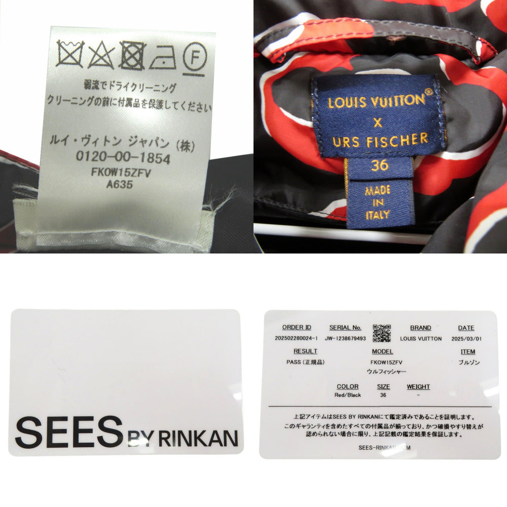 Louis Vuitton Down Jacket Down Red Tufted Monogram Urs Fischer Women 36