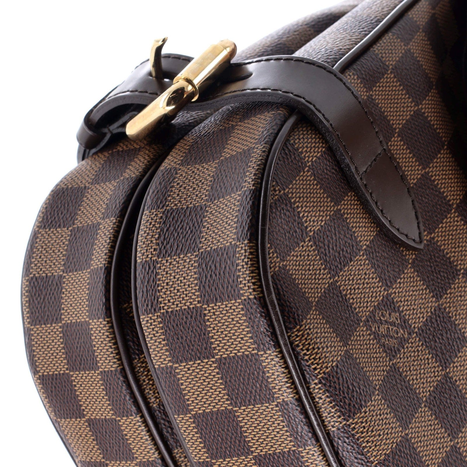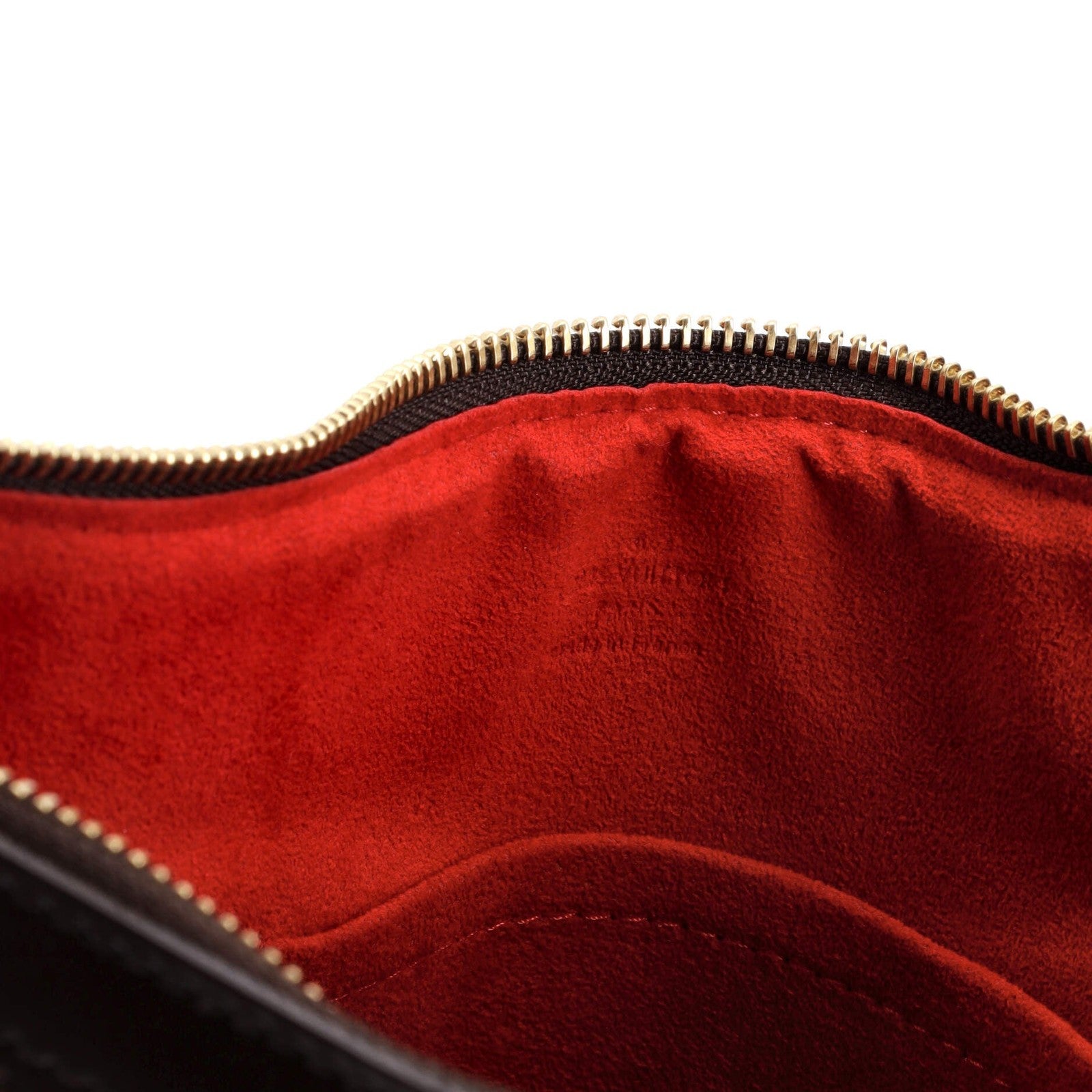 Condition: Very good. Exterior: corner wear, edge wear, creases, scuffs. Handles/Straps: creases, scuffs, discoloration. Interior: moderate odor, discoloration, scuffs. Hardware: scratches, tarnished